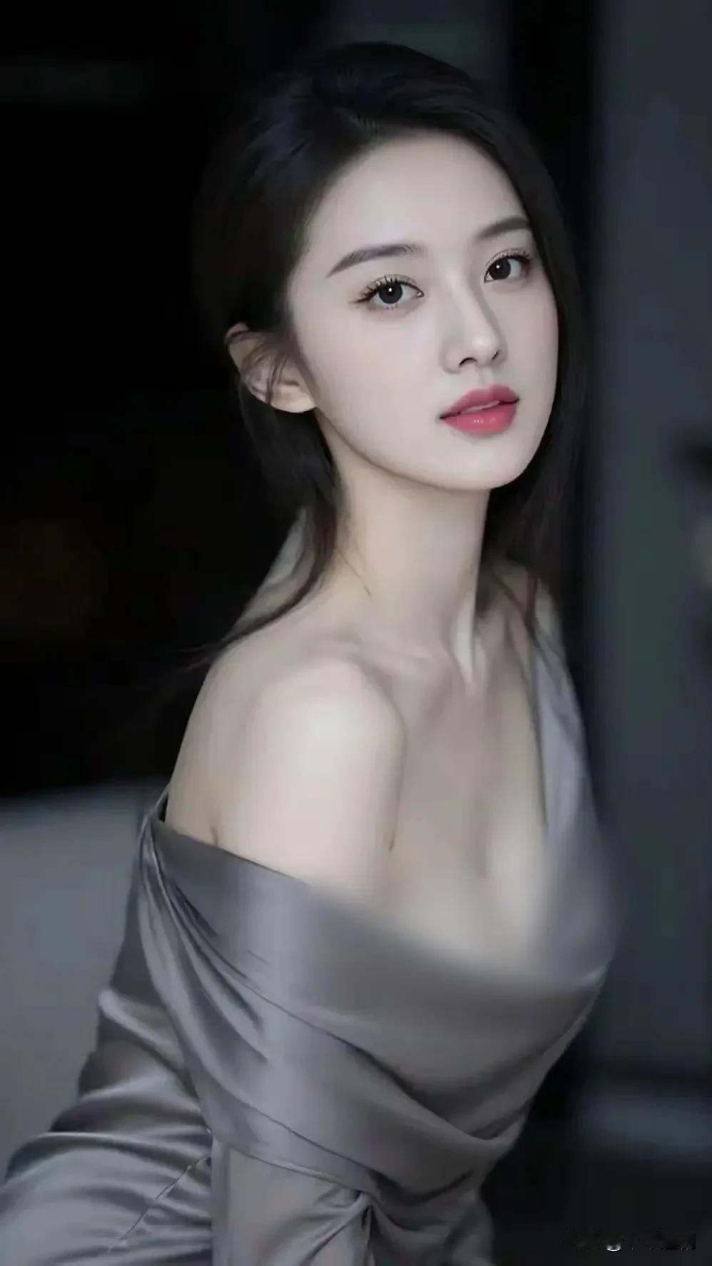 烟灰色缎面露肩裙,暗调光影里揉出冷艳又高级的氛围感~ 黑裙感美女 气质黑高级裙子