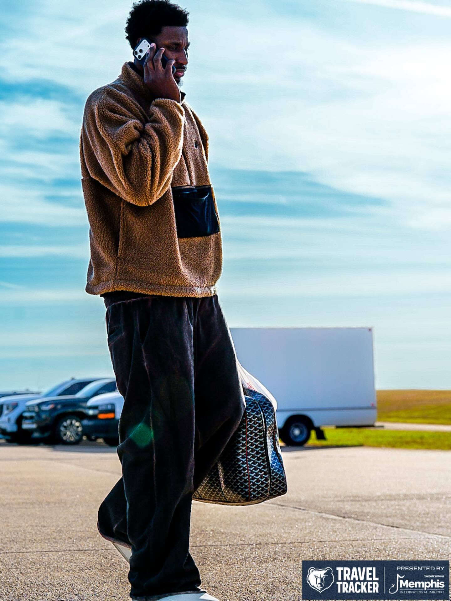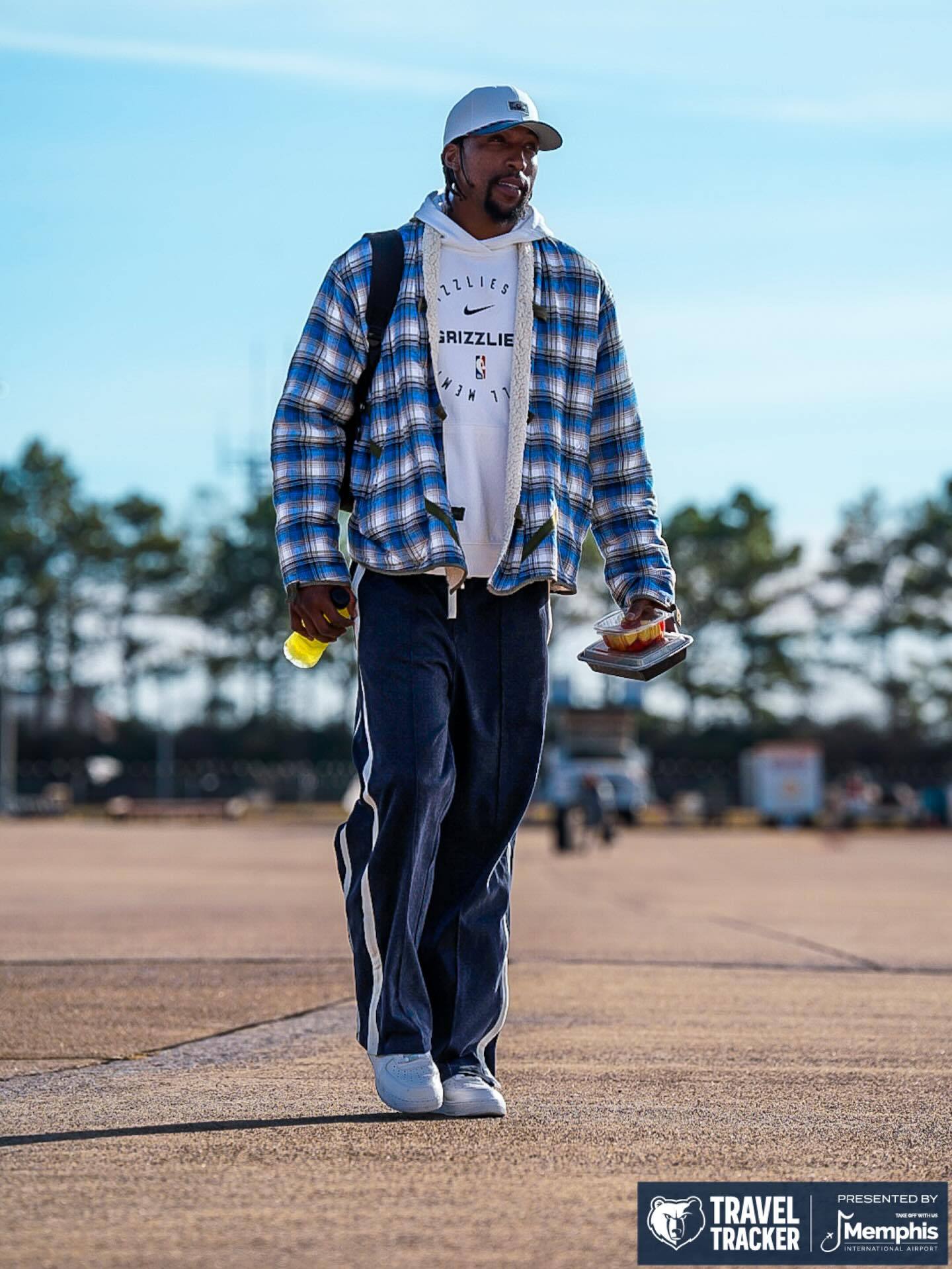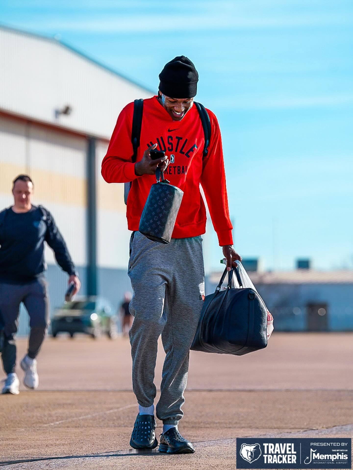 灰熊众将士启程飞往洛杉矶🛫,明日对阵湖人。灰熊vs湖人