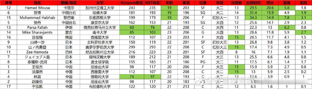 NCAA亚洲球员得分榜!中国球员包揽后五名 近日据欧洲选秀专家王健统计,NCA