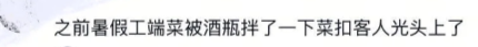 之前暑假工端菜被酒瓶拌了一下,菜扣客人光头上了