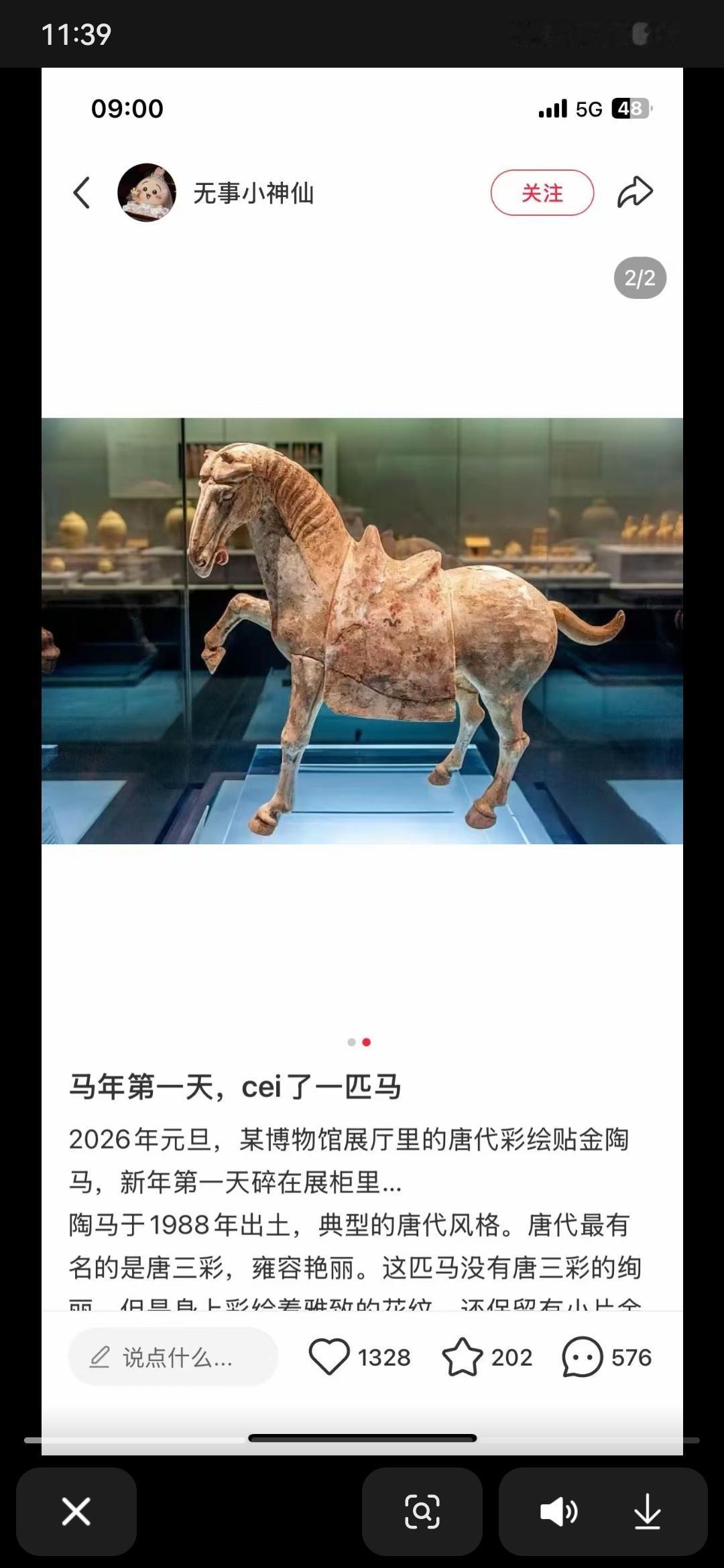 一觉醒来 又有文物出事情 2026年元旦,某博物馆展厅里面的唐代彩绘贴金陶马,居然cui在了新年的第一天 不知道这次是因为氧化啥的,还是因为其他做工不精细呢?现在能去博物馆多看看就看看吧,说不定不止这一件会cui