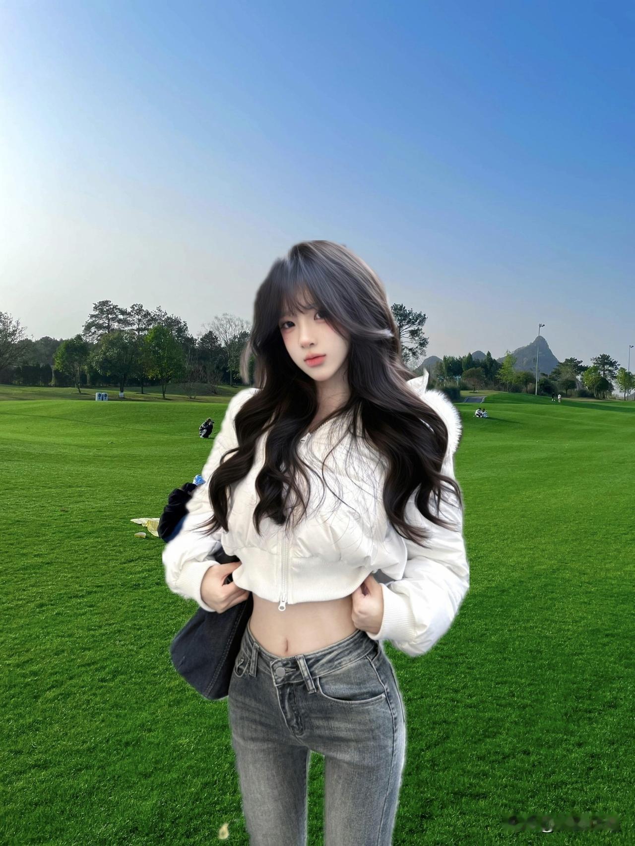 阳光明媚的午后,绿草如茵的公园,少女轻盈漫步,享受美好时光。
