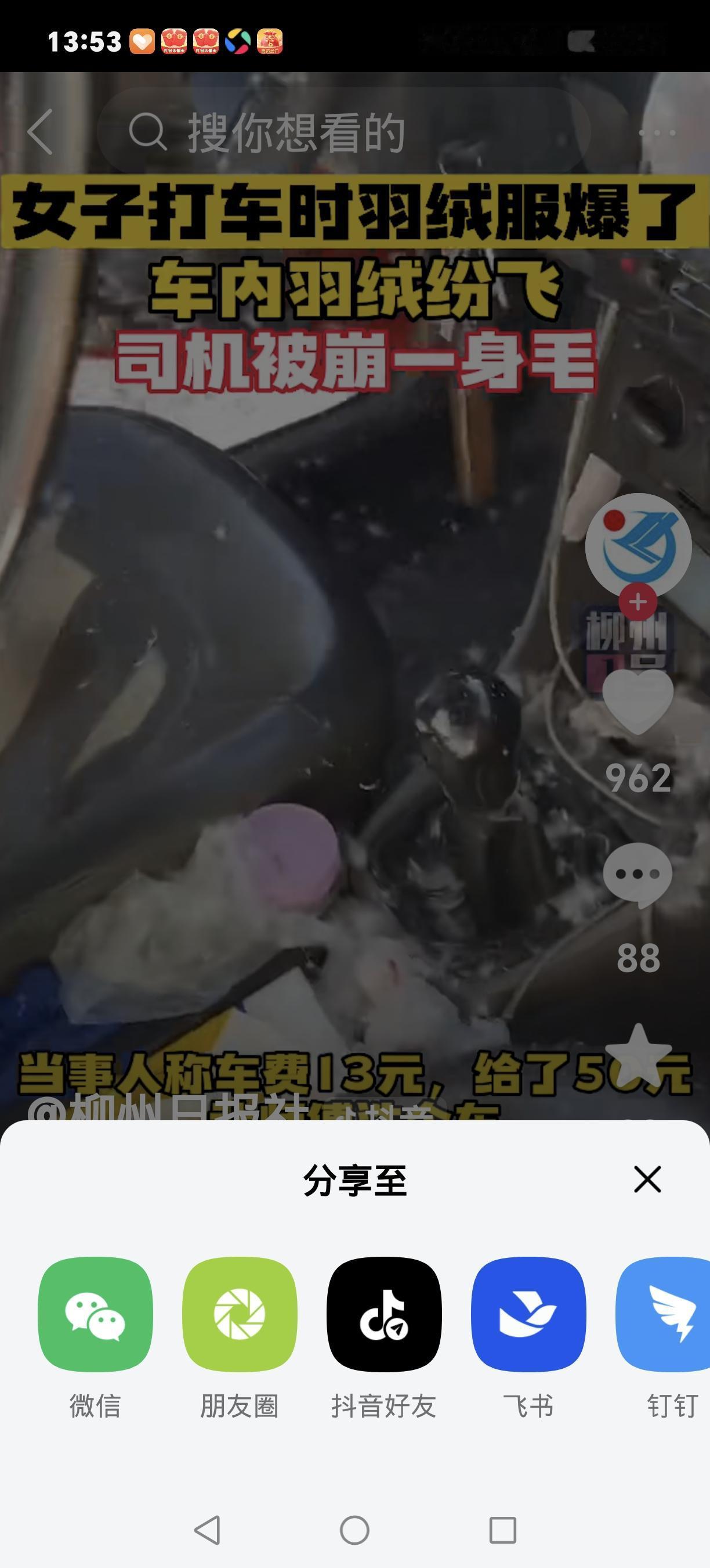 羽绒服打车“炸膛”!司机一句话笑翻全网 河北一女生打车回家,刚上车没多久,身上的羽绒服突然“嘣”的一声炸开,巨大的响动当场吓了司机一跳。 转瞬之间,羽绒漫天飞散,女生身上沾满了白绒,再看司机师傅,头发上、肩膀上、座椅垫上全被覆盖,整个人毛茸茸的,画面又滑稽又好笑。 出人意料的是,司机师傅不仅没生气,反而心态超好。女生下车后,他还把这段经历发到亲友群吐槽:“我今天拉了一朵蒲公英。” 这条趣事传到网上,瞬间引爆评论区。网友们纷纷乐不可支,有人追问羽绒服品牌,调侃说穿了几十年也想体验一把;还有人开玩笑打趣,问清理一车羽绒得要200块,微信还是支付宝支付。 原本一场可能引发尴尬的小意外,愣是被司机的幽默轻松化解。女生没了心理负担,还觉得这趟行程格外有意思。 不得不说,生活里的小插曲,遇上通情达理的人,就能变成实打实的快乐源泉。羽绒服事件 羽绒服塌方 氢气羽绒服