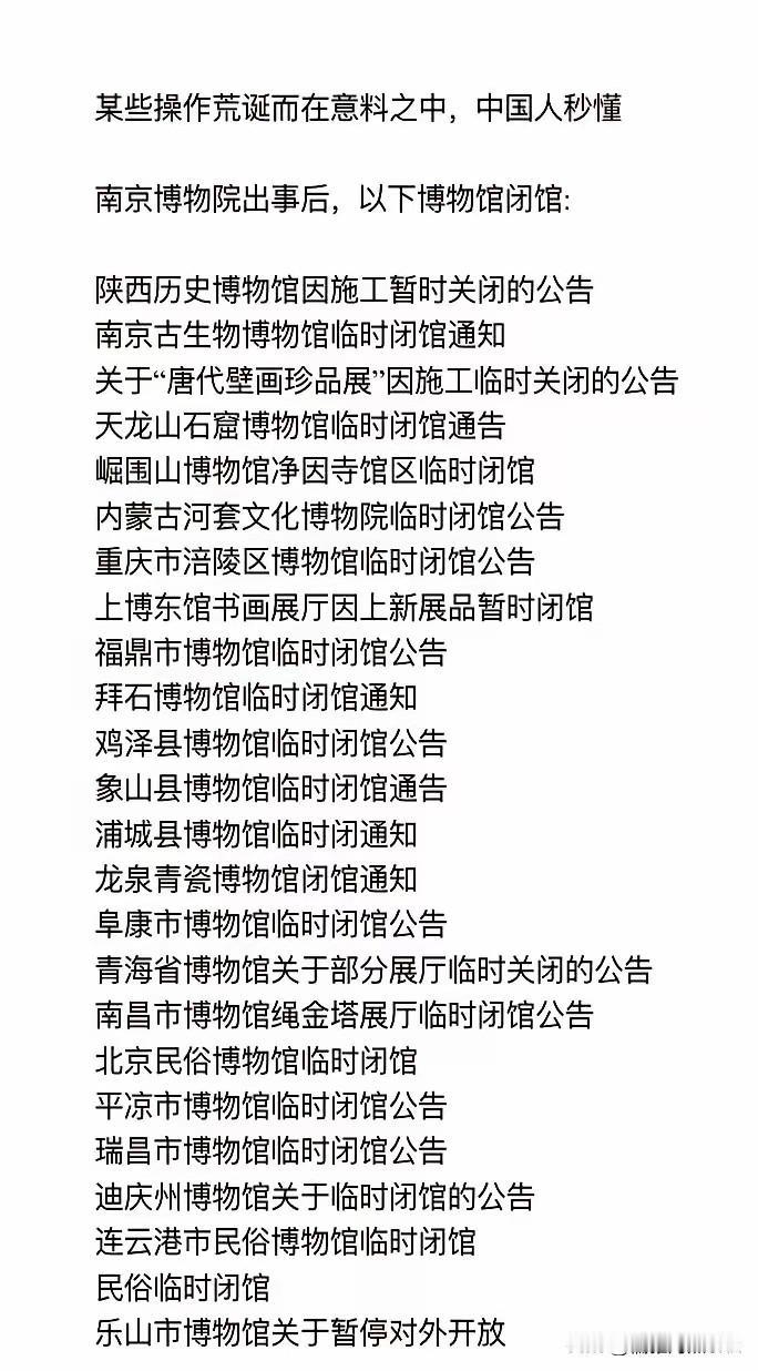 都感觉挖到了一环红裤衩了,但对结果没底,“老干部”身份有了新解,哪个博物馆都有他们的影子,心虚得光明正大。 徐湖平拿走1259件,这还是郭礼典退休前当典藏员时整理的,到底有多少,有网友用南京近代史三大事件来形容:一 南京条约 二 南京大屠杀 三 南京博物院国宝盗窃案 这些国宝以多种形式流出,老干部连借不还,还带收,徐湖平自盗自卖,胃口越来越大,敢撕国家南迁文物封条,他们比日本鬼子都坏,比八国联军的强盗行为不差上下。 他们是一串,挖出萝人带出泥,知道有他们,但挖起来有顾忌,汪海栗,韩培信,陆挺,韩建林等,哪一个不是有头有脸,身份举足轻重的人物。 在南博事件这个节骨眼上,一众多的博物馆关门谢客,好巧不巧,都感觉自己身上有问题。 民间打假声此起彼伏,江西博物馆差点被民间打假队踩中,真品和原件,这些人早做足了功课,真不真不知道,是原件,可以将真品定为“伪作”,将“伪作”定为原件,多讽刺。 此地无银三百两又何妨?明明知道这时候关门谢客就是心虚了,但心虚得光明正大。老干部太多了,有老干部撑着,大事能化小,他们再猖狂,在徐湖平面前也是小菜一碟,躲风声是一惯的行为。 庞家捐的南博,吴家捐的故宫,崔家捐的国博,都爆雷,试问哪个博物馆敢拍着胸膛说没事? 全网都在预测结果,很多人感觉挖到了一环的红裤衩了,人物线,时间线那么的清晰,但估计有无数条理由让三思而后行。 2025年,将是一个里程碑,“老干部”也有了新解,不再是为人民务的光荣称呼,而成为贪欲的贬义词。 你见过哪个国家的考公人数比考研多的?清华北大的当城管都被人羡慕死,当官才会出人头地,财富和地位才能升级,这就是个不正常的现象。 很多人提议,办什么春晚,直接搞成南博问证大会收视率更高。虽然都知道结果或许不是想要的答案,但还是都想知道。