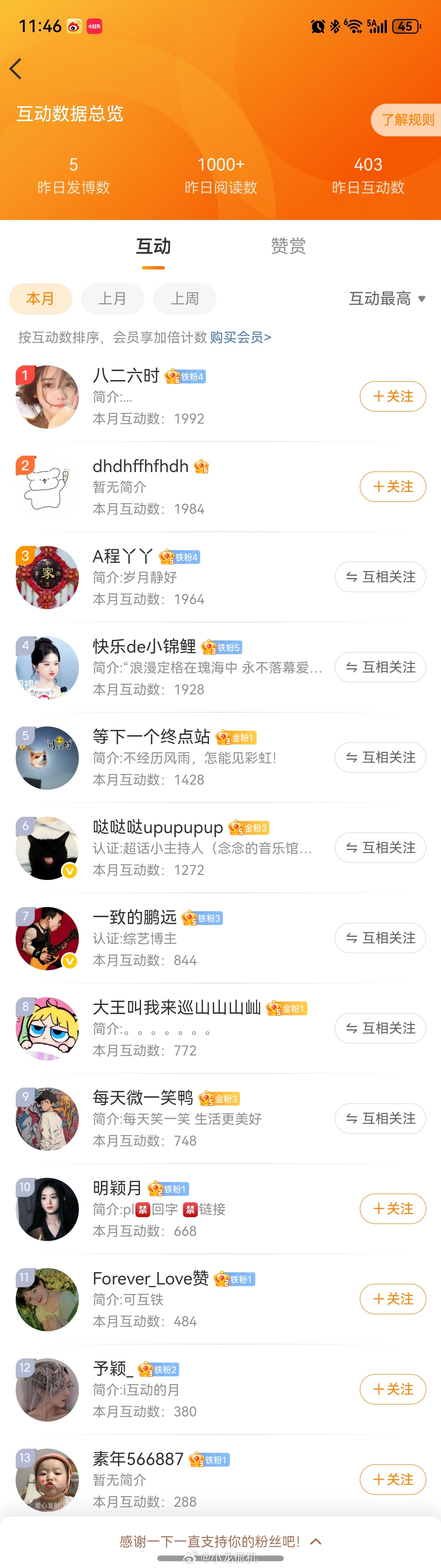 兄弟们,前十名来领互动福利了记得带上自己名次哈