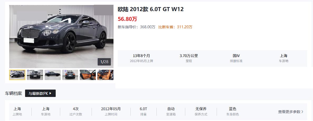 二手宾利欧陆选购:别为虚荣交智商税,这几款才是真值得 买二手宾利欧陆不看车况,看年款。其实有点傻!别信“英伦奢华”的噱头,二手市场里的欧陆,一半是撑场面的工具,一半是埋坑的陷阱。选对了是低调的实力彰显,选错了就是源源不断的维修账单。 买这款二手车的人,核心主要是两个需求:一是商务场景的身份背书,二是日常代步的小众奢华体验,没人真把它当性能车开。年款首选2020款 4.0T GT V8,这款车最大功率404kW,峰值扭矩770N·m,零百加速4.1秒,动力够用且故障率远低于W12车型。2020款改款后优化了变速箱逻辑,顿挫感大幅减轻,配置上标配全速自适应巡航、360度全景影像,日常使用便利性拉满。次选2018款 4.0T GT V8 S,动力参数和2020款接近,性价比更高,只要车况没问题,公里数控制在6万以内就能入手。 坚决不选2016款及之前的W12车型,这款6.0T W12发动机的涡轮增压器故障率高,更换一次成本超10万,而且油耗高达18-22L/100km,后期养护压力远超收益。2017款 4.0T 车型也谨慎选择,该年款存在部分批次的电子系统故障,中控黑屏、车机卡顿是常见问题。年款选择逻辑很简单:预算充足直接上2020款及以后的V8车型,预算有限优先考虑2018-2019款V8,无论哪年款,都要避开W12版本,除非你有无限的养护预算。二手宾利欧陆的核心价值是“花更少的钱享受同等奢华”,偏离这个核心,再便宜的价格都是智商税。【来自懂车帝车友圈】