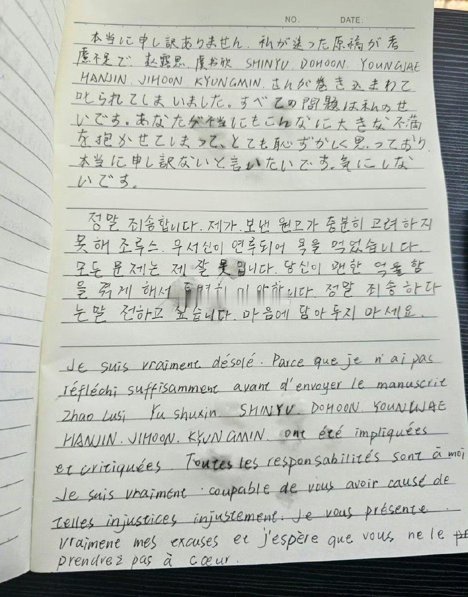 韩厕皮下给赵露思粉丝写手写信道歉致歉