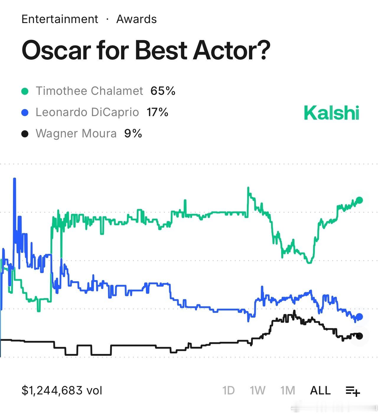 美国网站Kalshi预测“甜茶”提莫西·查拉梅有65%的概率获得今年的奥斯卡影帝