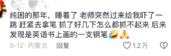纯困的那年,睡着了老师突然过来给我吓了一跳,赶紧去拿笔 ,抓了好几下怎么都抓不起来,后来发现是英语书上画的一支钢笔