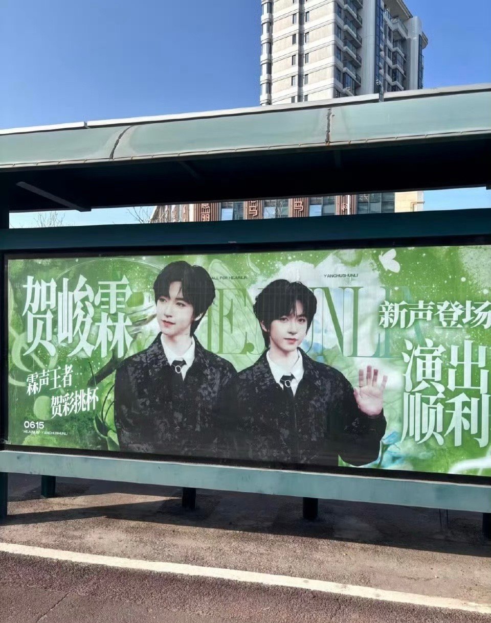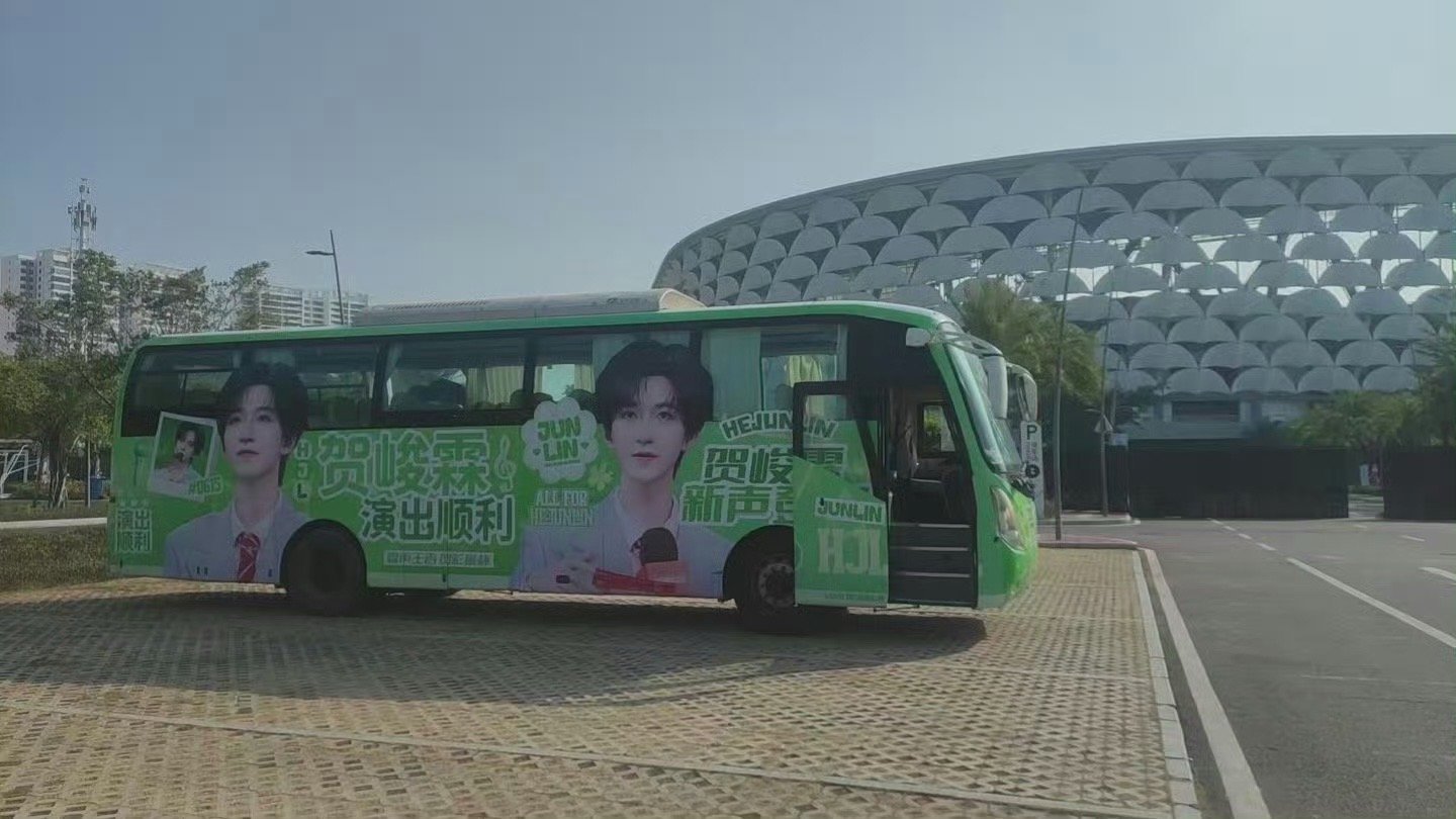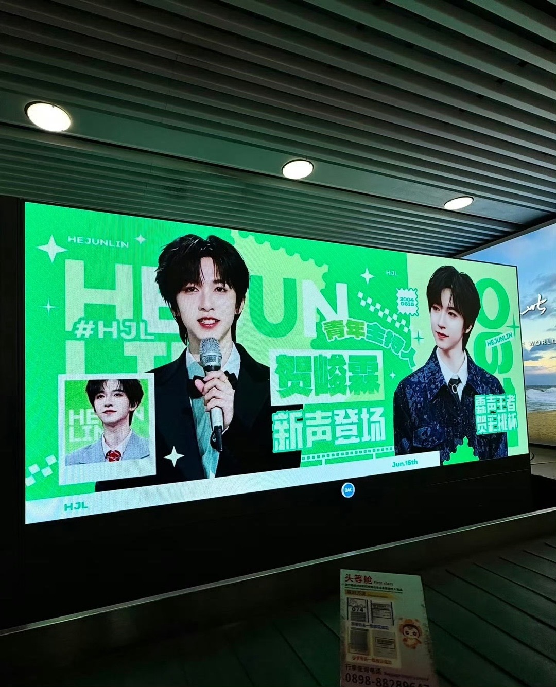 贺峻霖三亚粉丝应援 贺峻霖王者挑杯决赛特邀主持人和评论席嘉宾!三亚粉丝应援好漂亮💚一会儿直播见