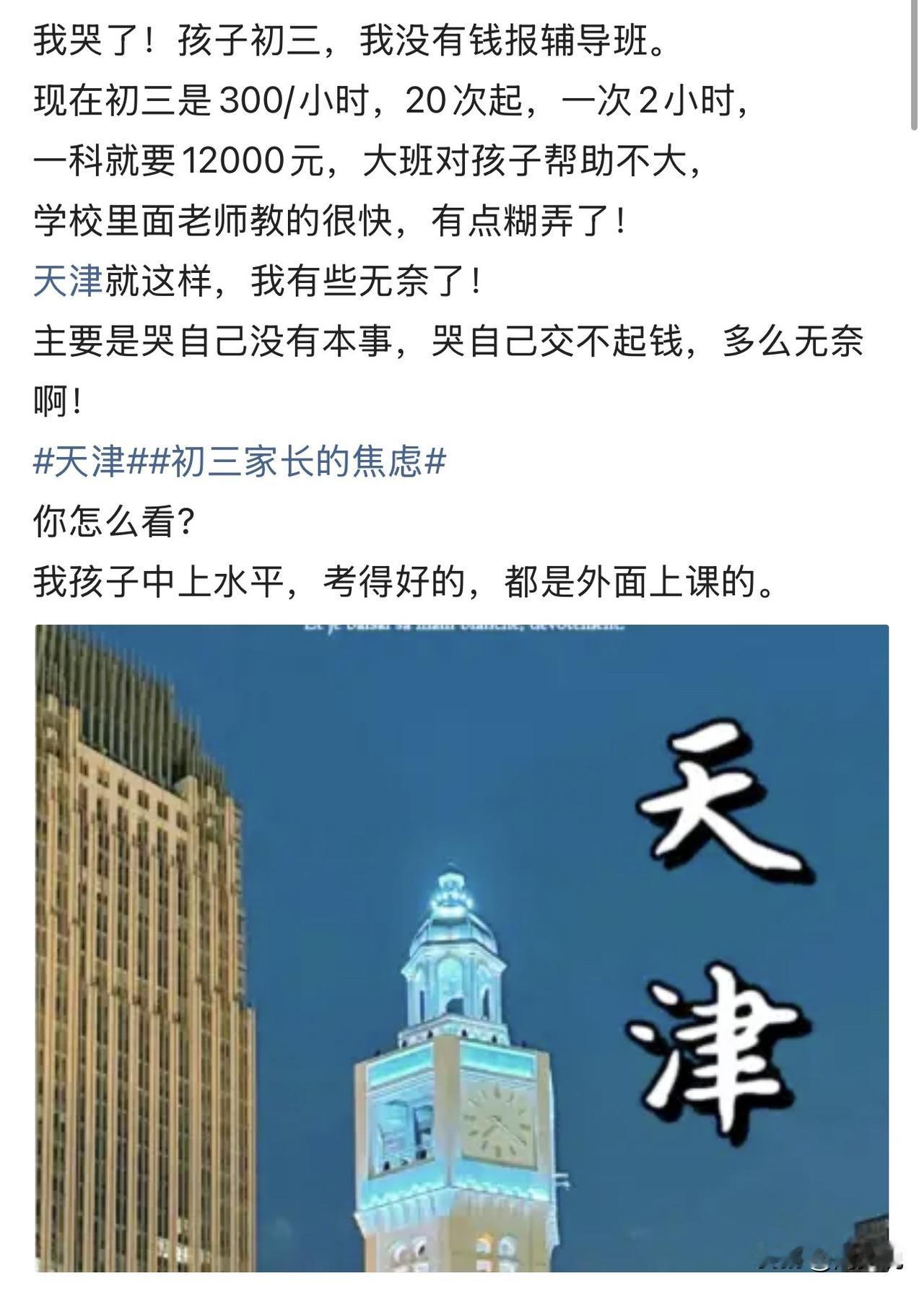 “泪崩!”天津一位家长哭诉:孩子读初三,正是冲刺升学的关键期,可高昂的补课费,却