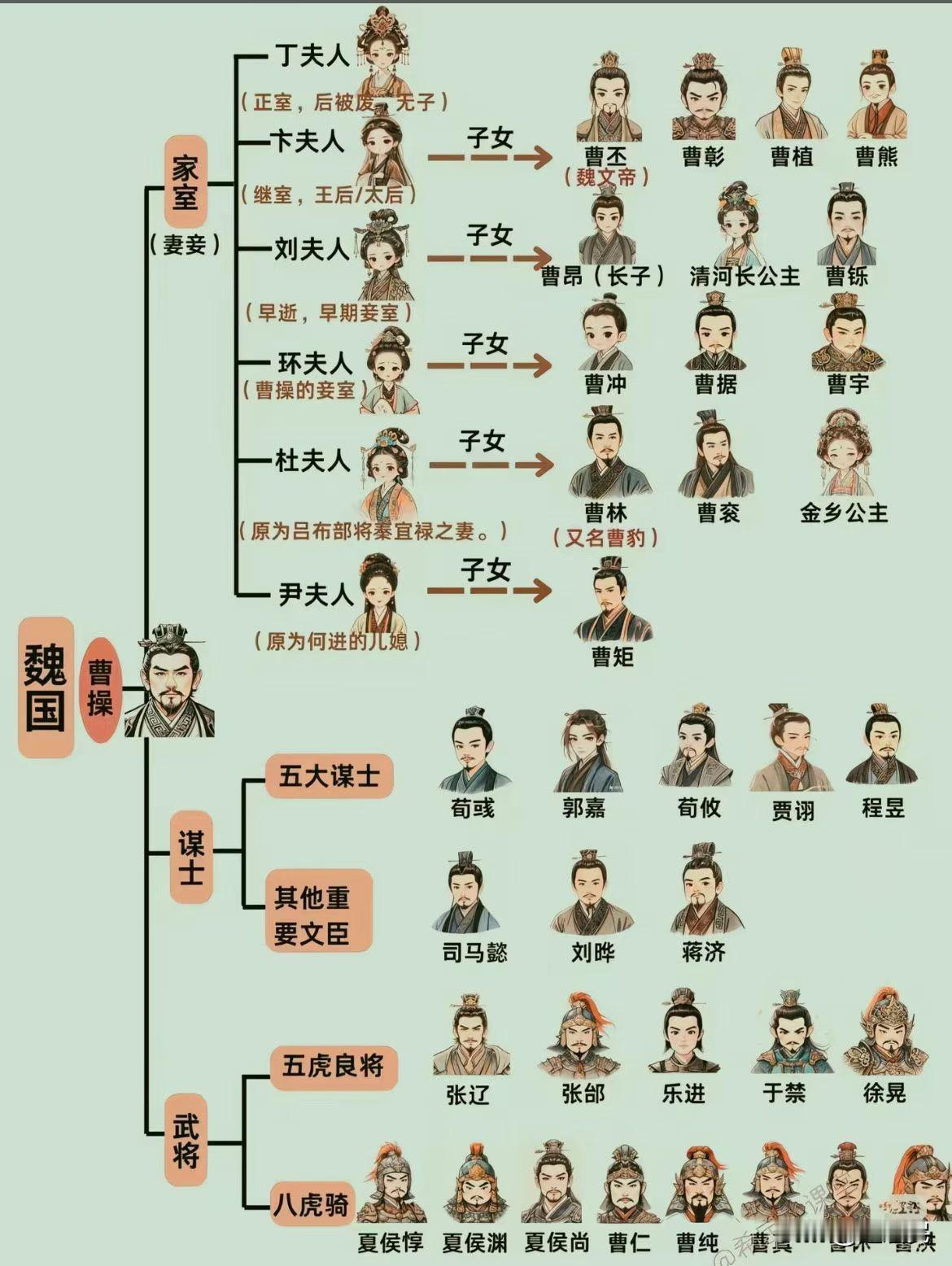 三国演义人物关系图,侧重于一把手的家庭妻妾和高管团队。