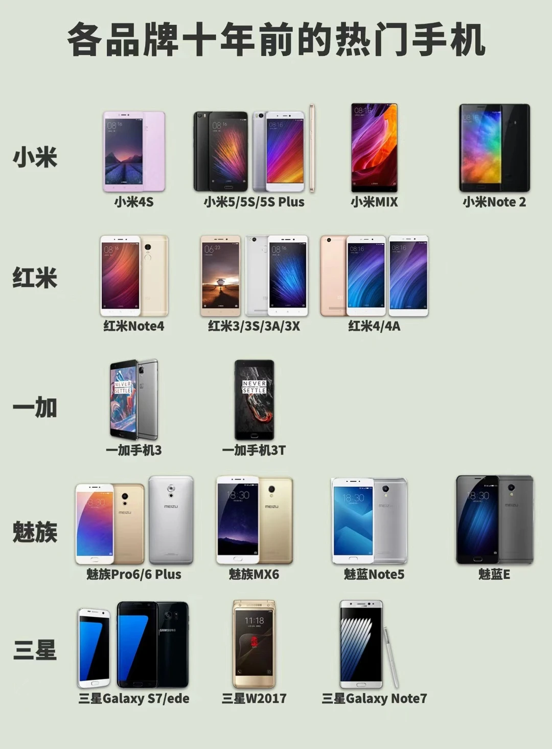 小米:小米4S、小米5S、小米MIX、小米Note2等;