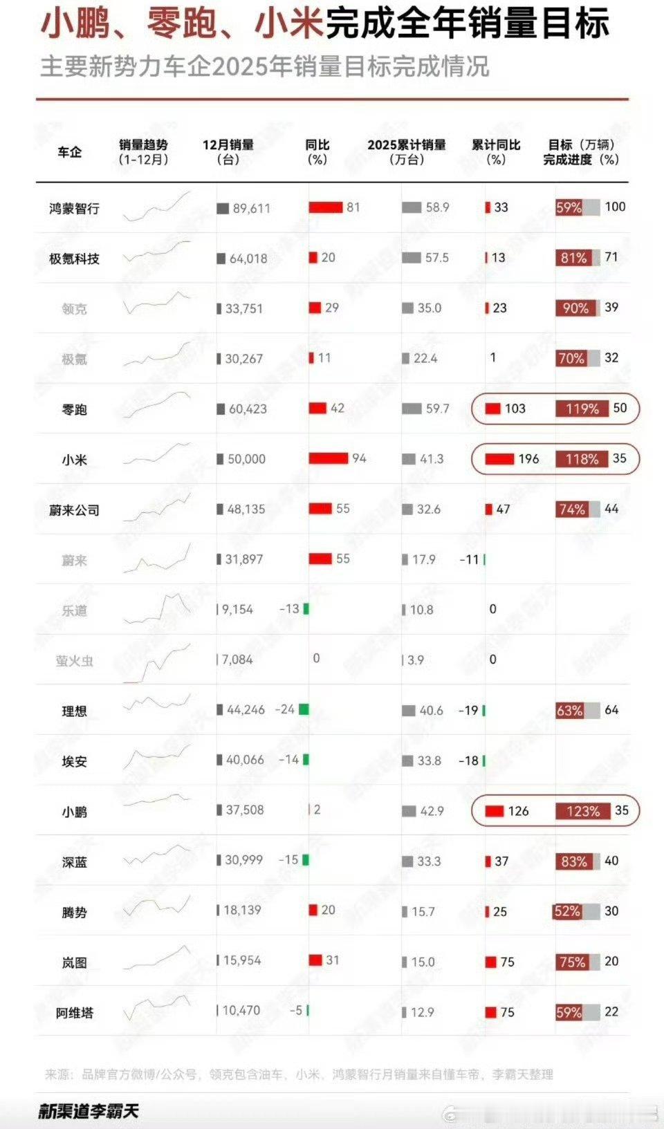 新势力12月以及2025年全年销售榜,国企岚图、智已、阿维塔一直稳住大后方,不过