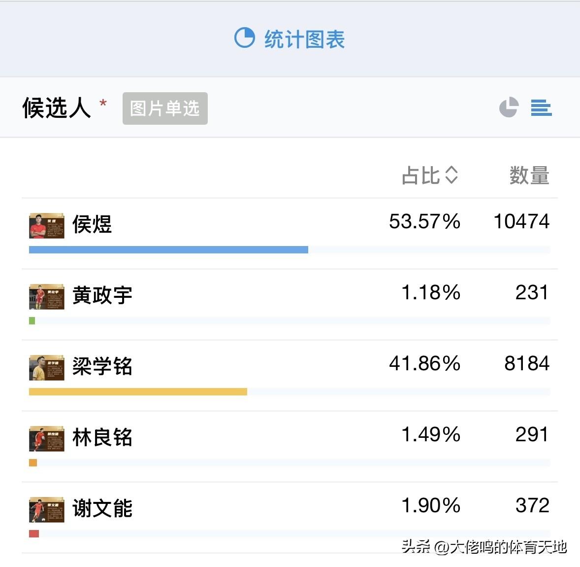 恭喜候煜,实至名归,要论人气还得是小侯,破万票、过五成(半数)夺取,力压林良铭的8000多票,足以说明一切…… 4号晚上共同见证候煜加冕广东足球先生,今年省超、省港杯也是续火热,期待广东足球未来的发展越来越好[碰拳]