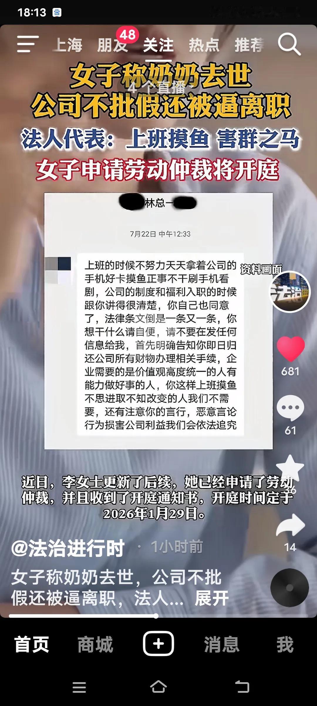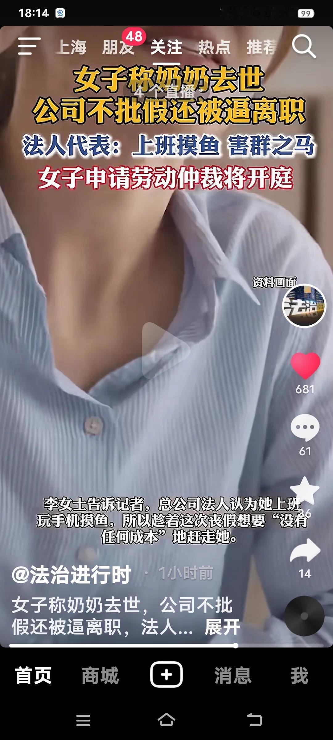 江苏常熟的李女士,2025年7月奶奶离世。她先向经理和人事申请事假,人事却告知,总公司法人不批准,要求她离职才能离开。 李女士试图协商,人事态度却十分坚决,提出要么自动离职,要么被开除。公司法人称她上班时摸鱼,想“零成本”将她辞退,不过李女士对此予以否认。李女士在这家公司担任文员一年有余,此前请假都是口头确认,到了法人这里却变了卦。如今,她已申请劳动仲裁,将于2026年1月29日开庭。 说到底,李女士确实是位好员工。一般来说,丧假都有一周,要是她真在上班时玩手机,老板顺水推舟辞退她也不是不行,想必领导也不会无端说假话。公说公有理,婆说婆有理,大家都尊重事实说话,或许事情就没那么麻烦了。闹上法庭,要是打不赢官司,既耽误了时间,又回不了公司,这又何苦呢? 个人观点,不喜勿喷!