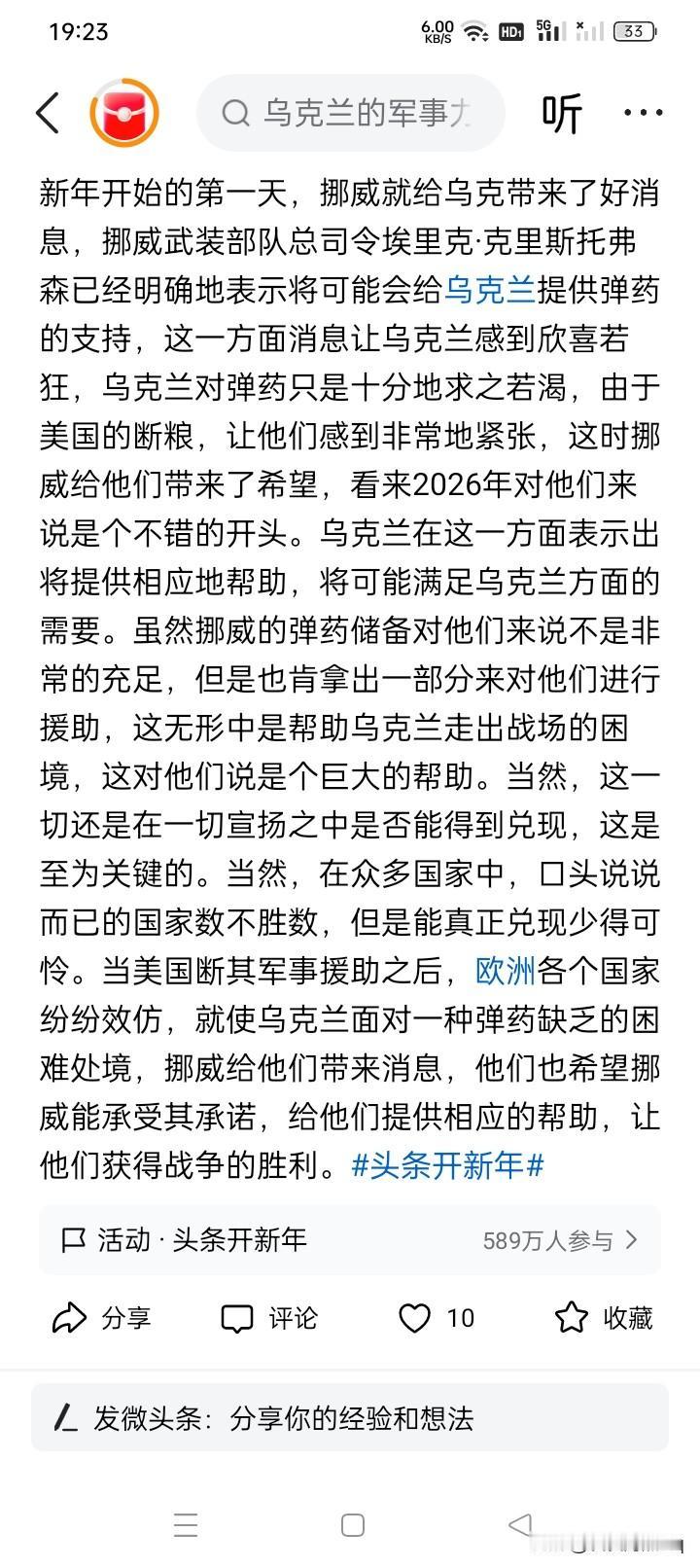 好消息? 乌克兰在2026年的开始之初,似乎就传出来好消息。 第一是德国最新援助提供的两套“爱国者”防空导弹系统,好像已经正式布置到乌克兰的领土,进入防空值班序列。 第二是挪威武装部队总司令埃里克·克星期托夫森,已经似乎明确表示,将向乌克兰提供弹药支持。这里所说的弹药,估计主要是指各种炮弹之类的弹药,而并非士兵手持轻武器所需要的子弹类。 乌克兰的抵抗战争,好像牵动很多人、很多国家,特别是欧洲人和欧洲国家。