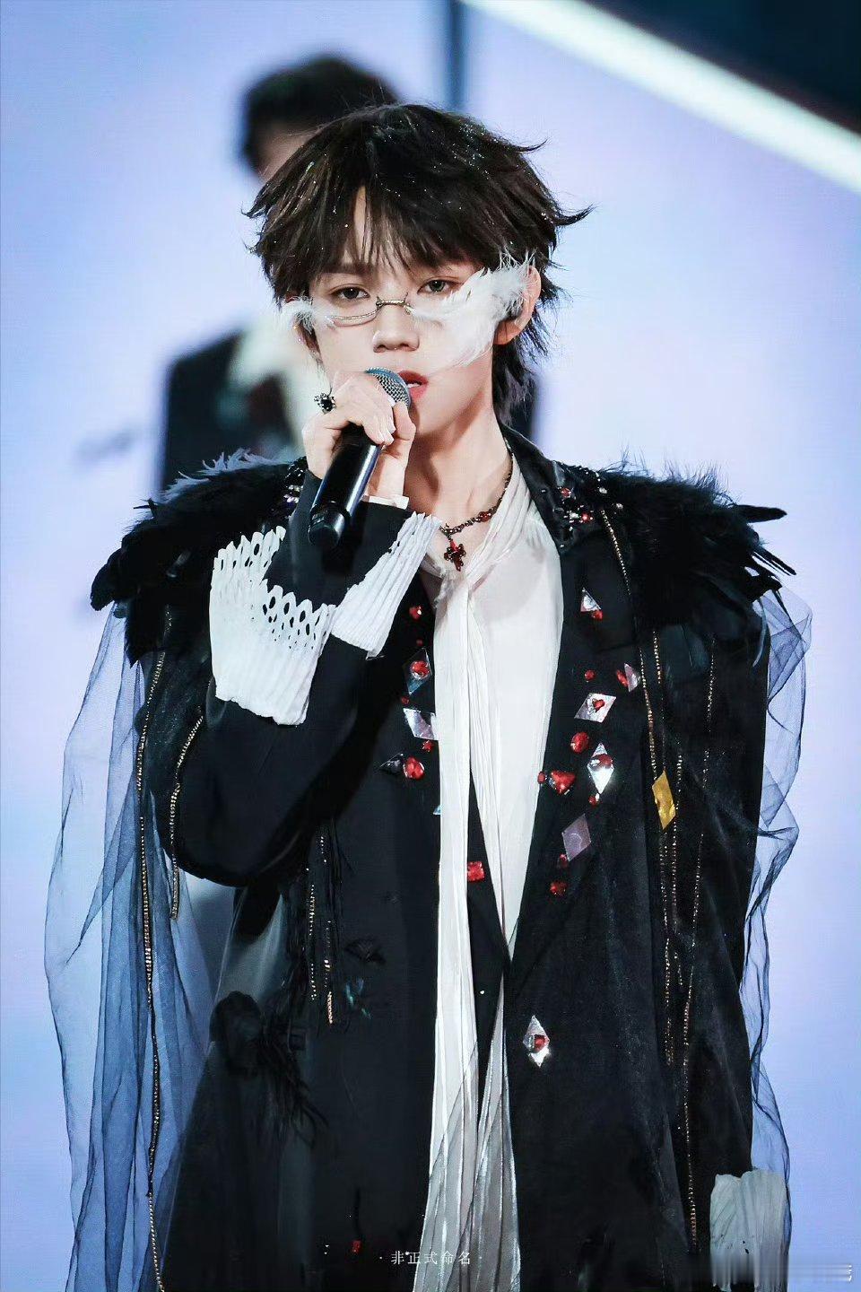 跨年!跨年晚会的聚光灯突然暗下来,肖战穿着一身紫色西装走上台。台下粉丝举