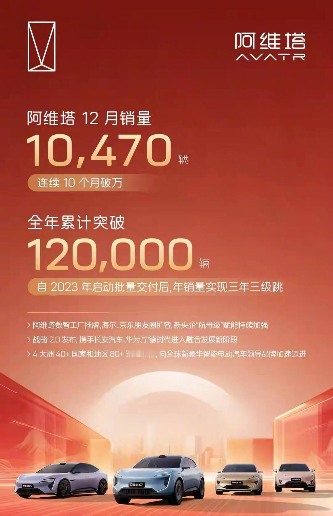 长安汽车12月销量25.48万台,同比增长1.63%。2025年全年销量291.3万台,同比增长8.5%。其中,阿维塔汽车12月销量10470辆,连续10个月销量破万,站稳月销万辆台阶;全年累计销量突破12万辆,自2023年启动批量交付后,年销量三年实现三级跳。