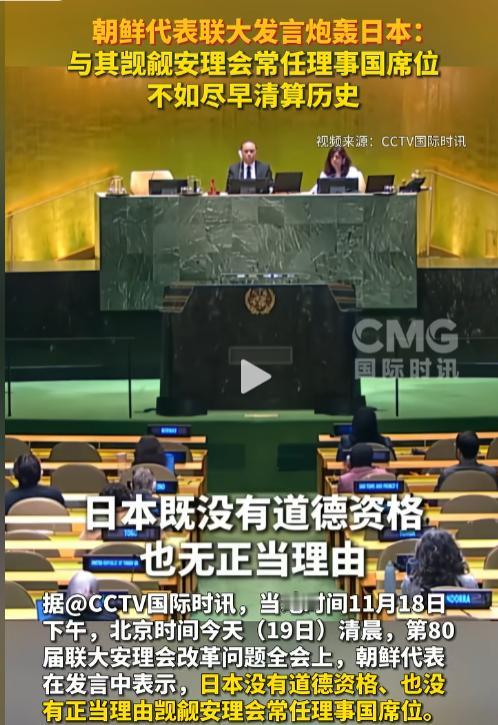 朝鲜的代表在联合国大会上站起来说话,第一句话就问日本这个二战战败国凭什么想当常任