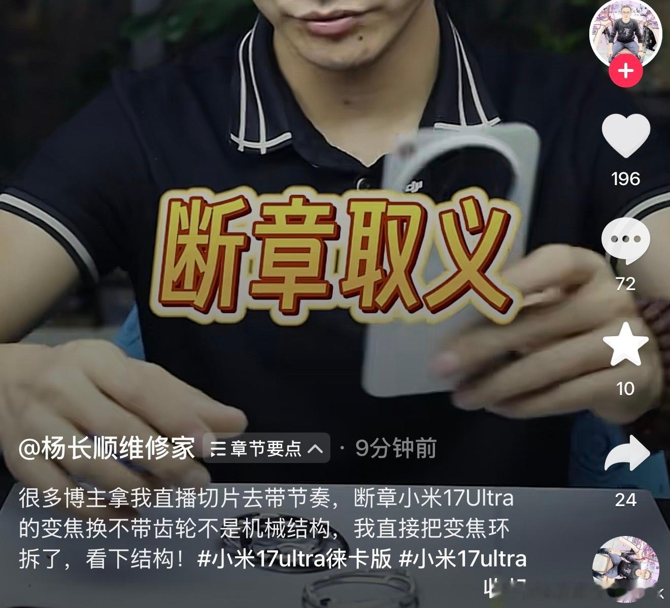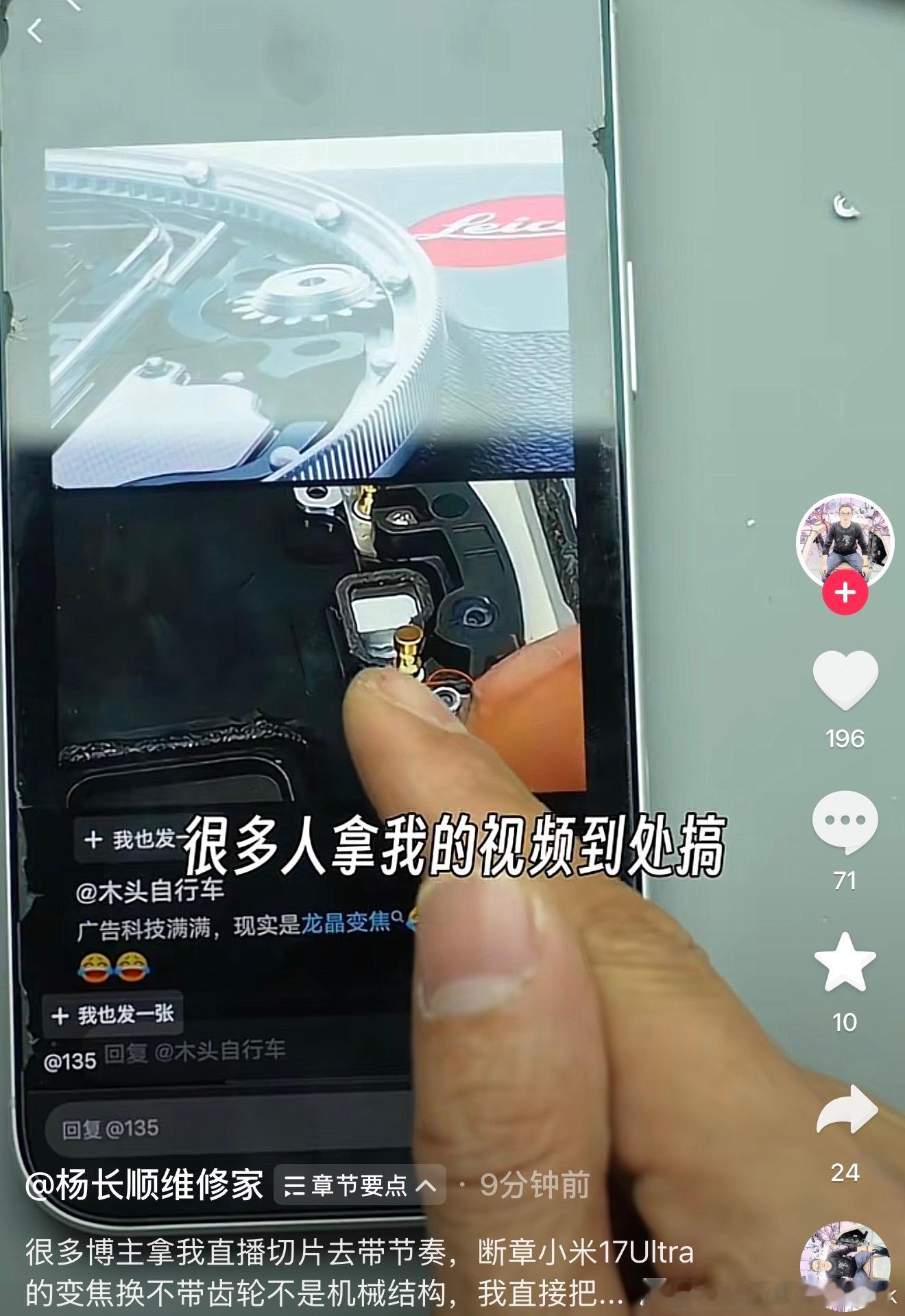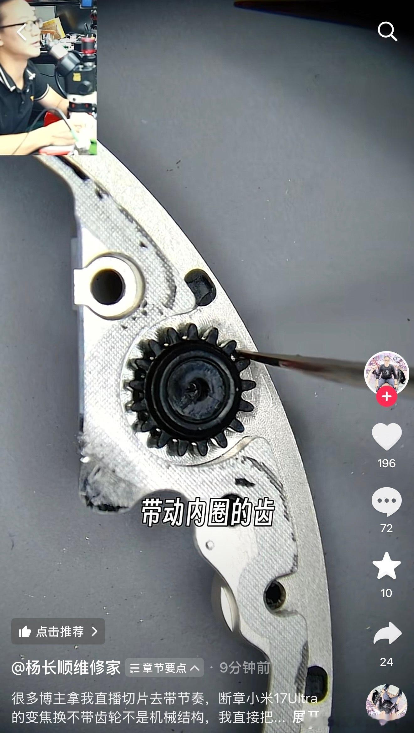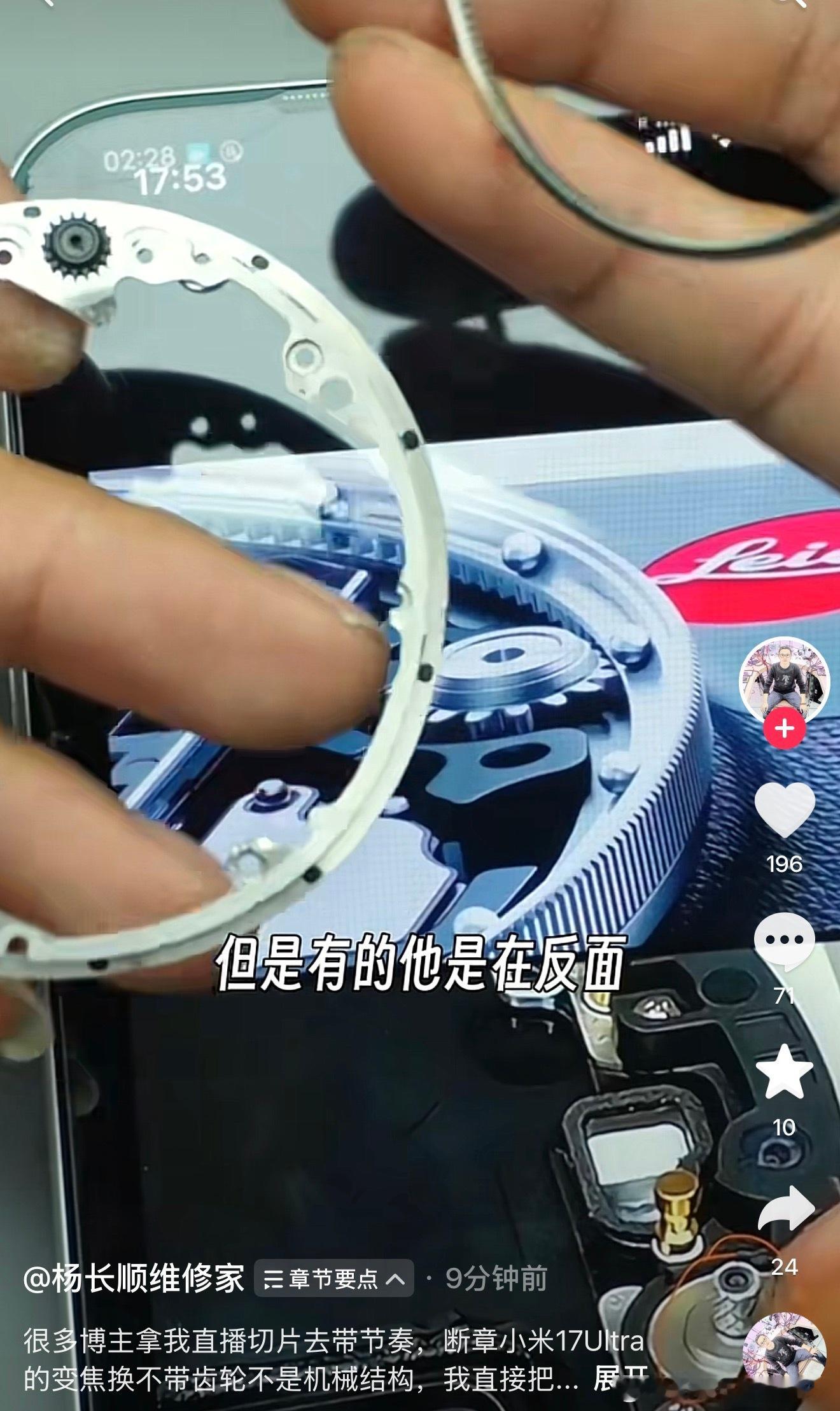小米17Ultra徕卡版,机械变焦环的主要结构其实是在背面,通过拆机能够很清晰的看得到,的确是有机械齿轮结构的。很多博主拿别人杨长顺的拆机视频断章取义带节奏,这两天一帮造谣带节奏的博主和评论区黑水军,逼得别人今天破拆了一台来辟谣我敢信这帮造谣博主百分百不会传播这个辟谣信息