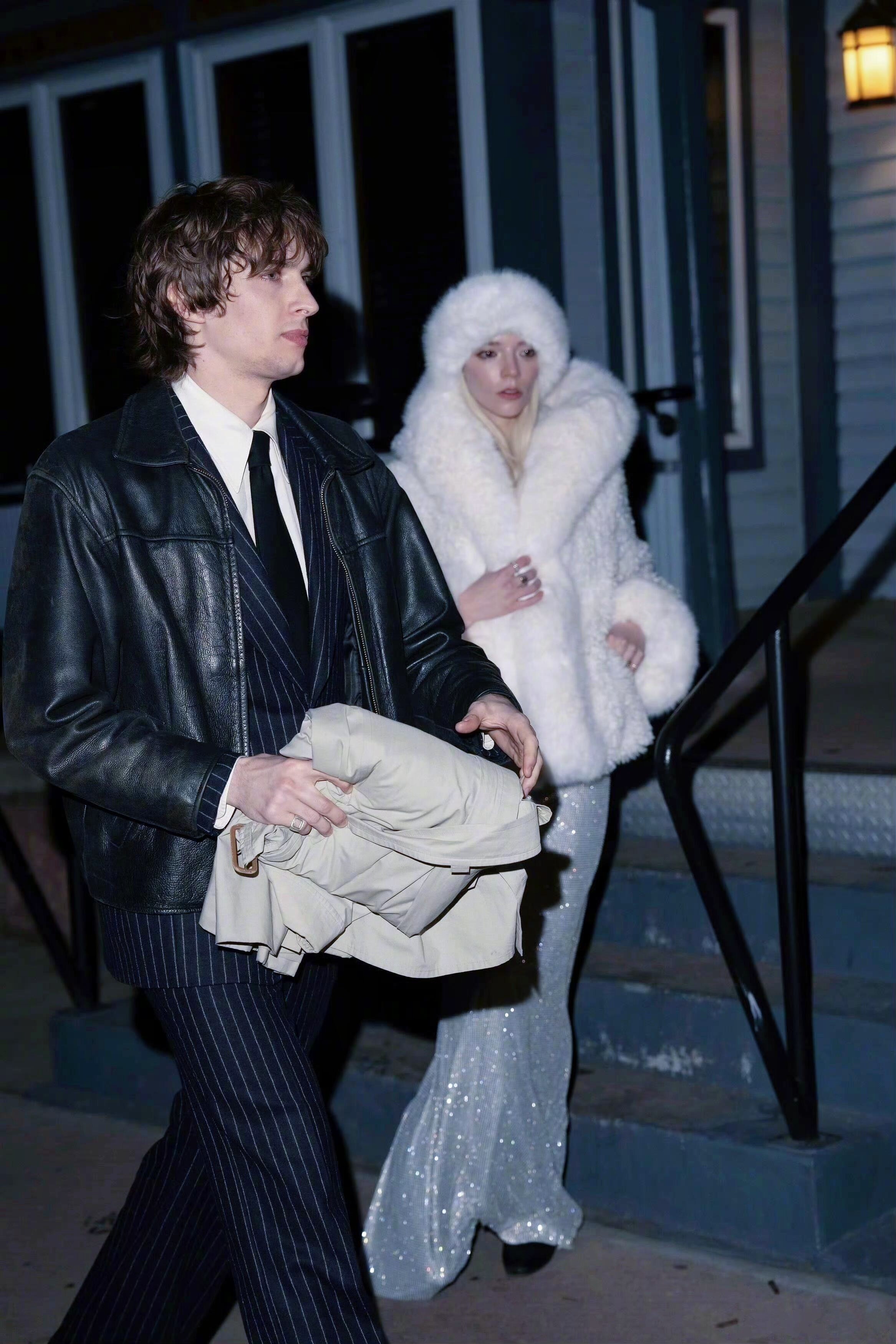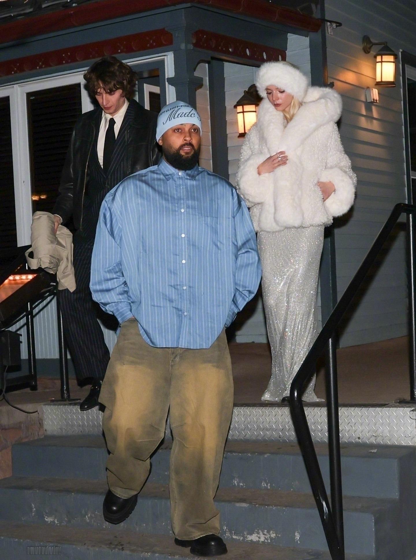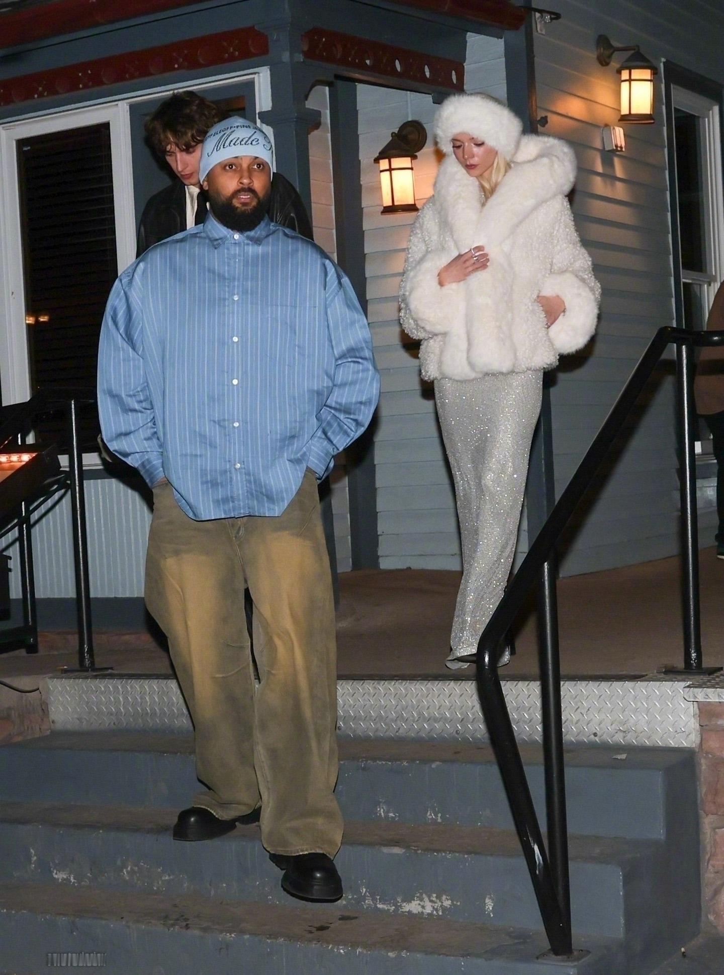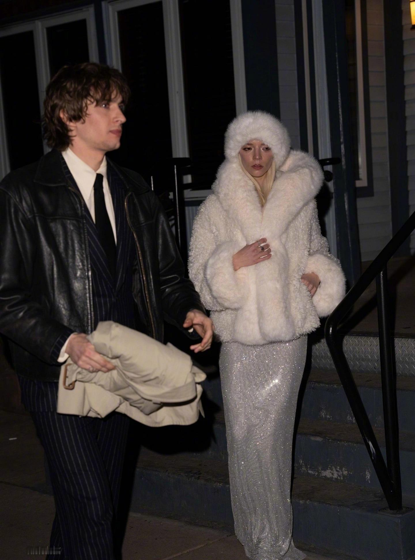 跨年夜,安雅Anya Taylor-Joy和丈夫马尔科姆·麦克雷在美国科罗拉多州阿斯彭离开Matsuhisa餐厅被拍,养眼的一对儿。两位应该是出席凯特·哈德森在阿斯彭举办的新年夜派对。 安雅身穿misscircle 人造皮草,内穿银色礼服。米拉服饰解析