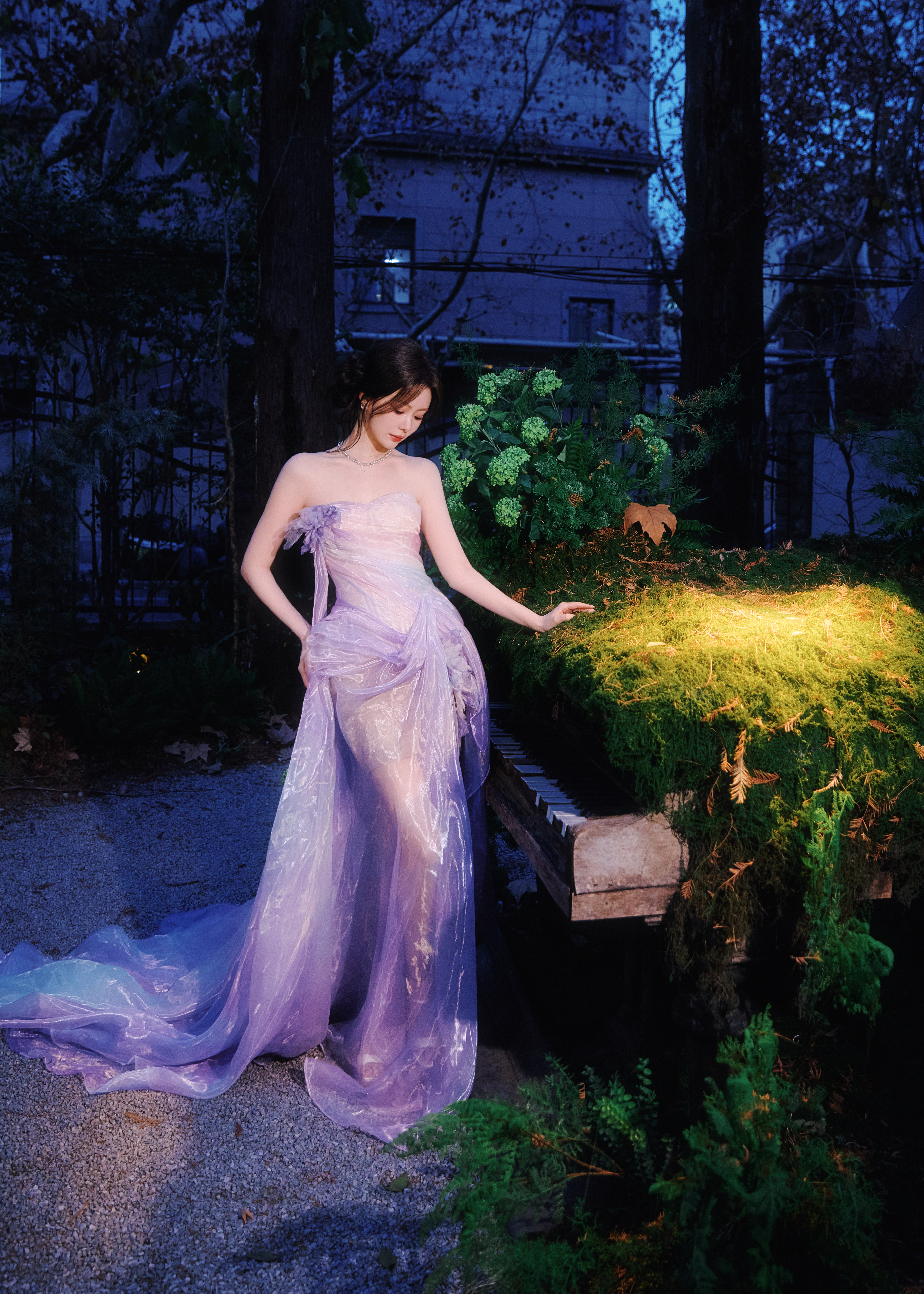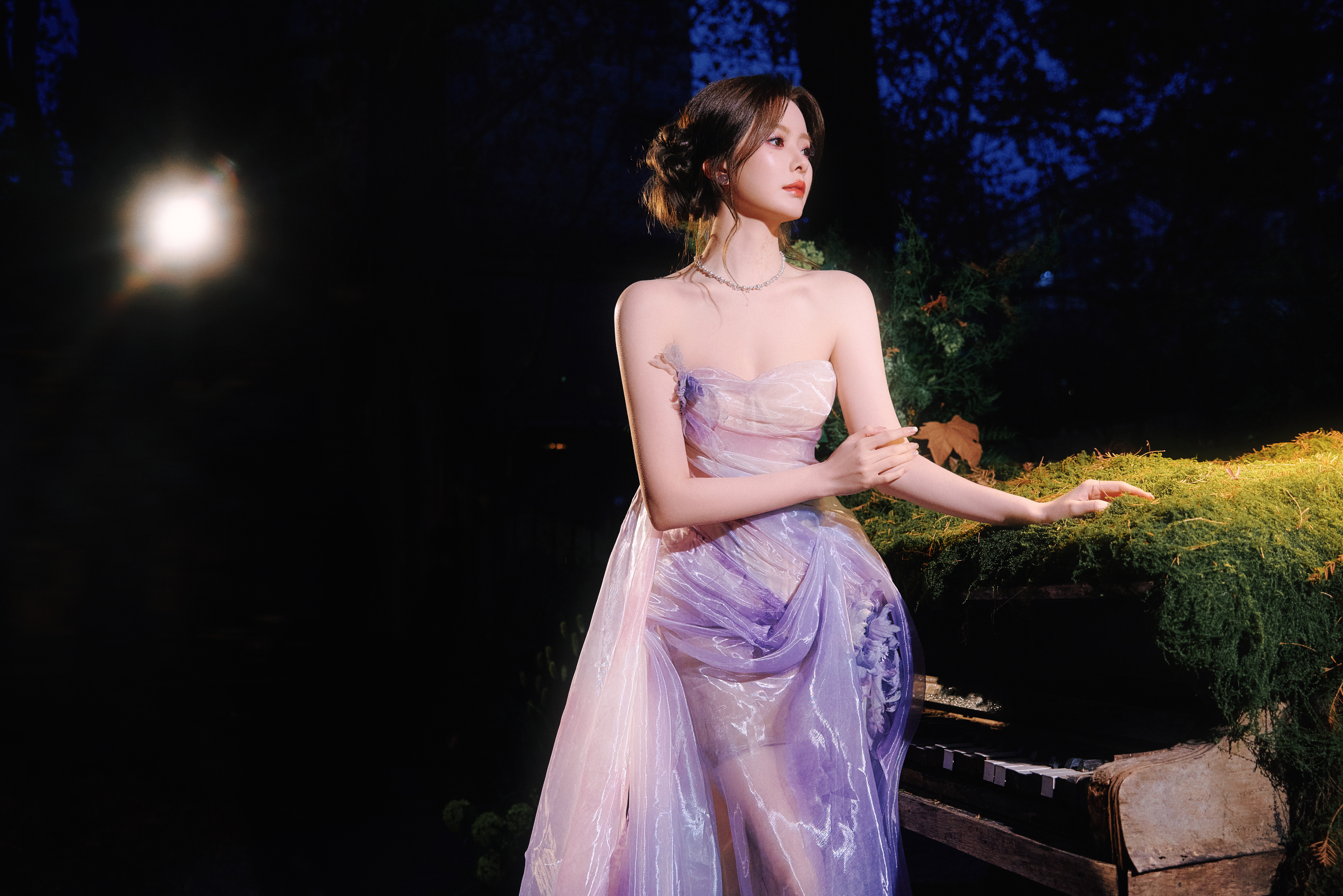 陈卓璇 紫纱礼裙似揉碎了暮色星云,贴肤剪裁勾出曼妙曲线,长腿隐在薄纱后漾着朦胧的媚,清冷又矜贵的气质,像暗夜中盛开的紫玫瑰。陈卓璇我要一山更比一山高