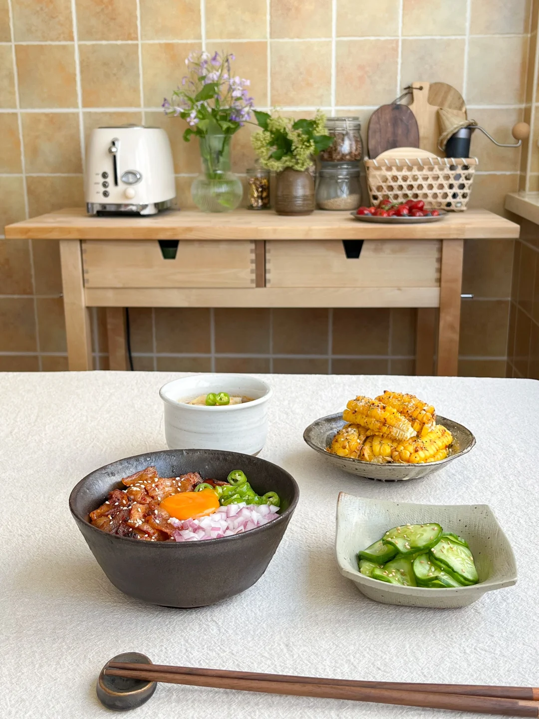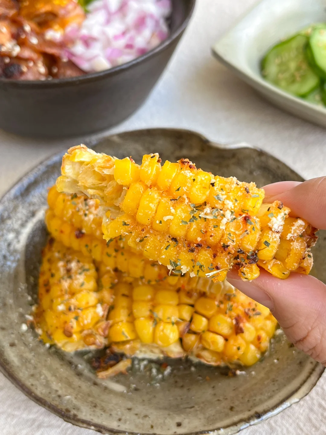 今日午餐: 甜辣猪肉饭🥓 黄油烤玉米🌽 凉拌黄瓜🥒 蔬菜汤🥣 新鲜的玉米上市了 10块钱四根 电饭煲里煮了三根 留着早餐吃 还剩一下一根水果玉米做黄油烤玉米 黄油融化后加一点橄榄油 多多的大蒜粉、糖一勺、辣椒粉 我还放了牛排调味料 有烧烤的味儿了 空气炸锅180度烤15分钟左右 出锅撒点芝士粉和欧芹碎 真香啊~ 好吃到一直在嗦手指头 hhh
