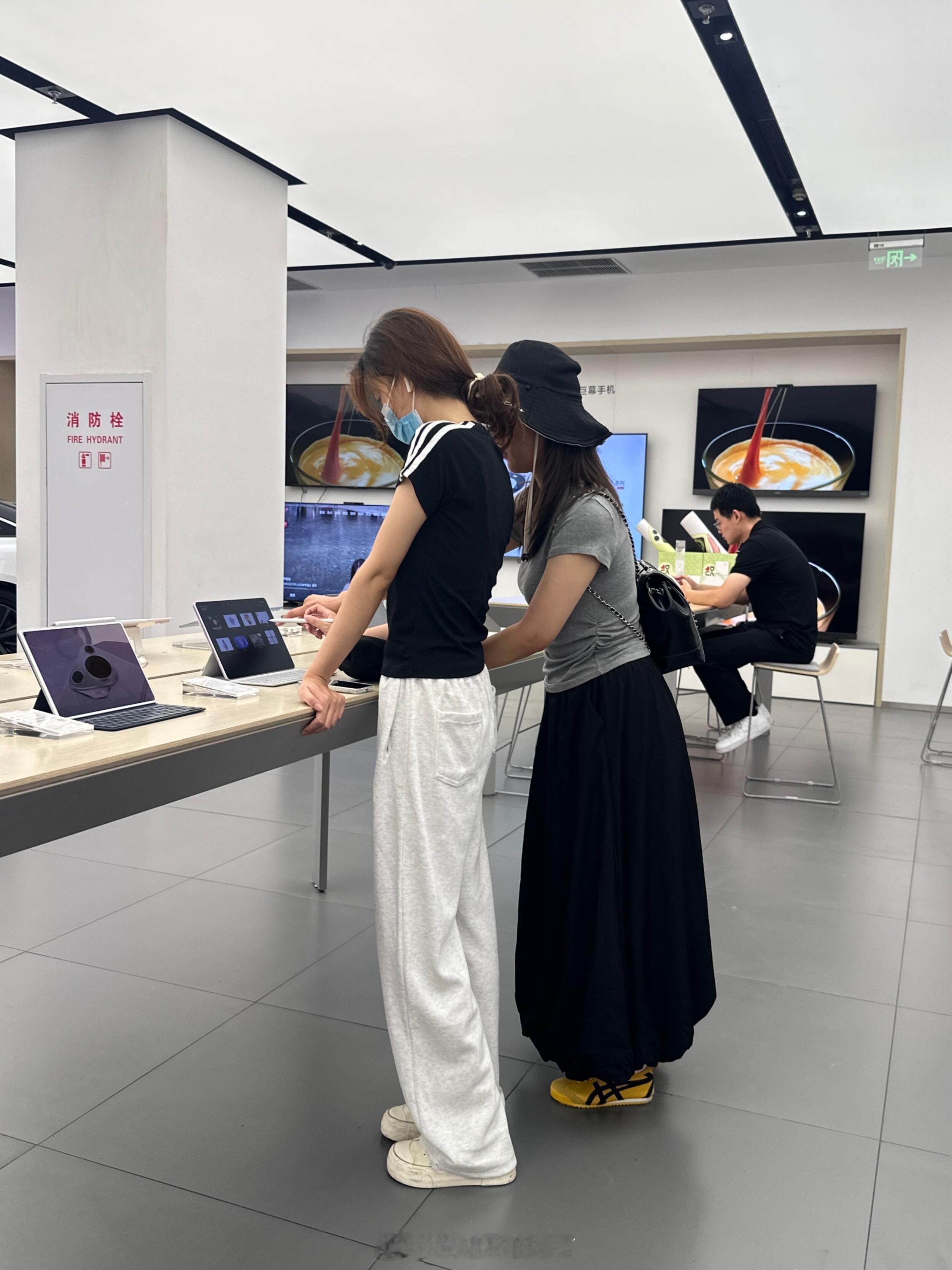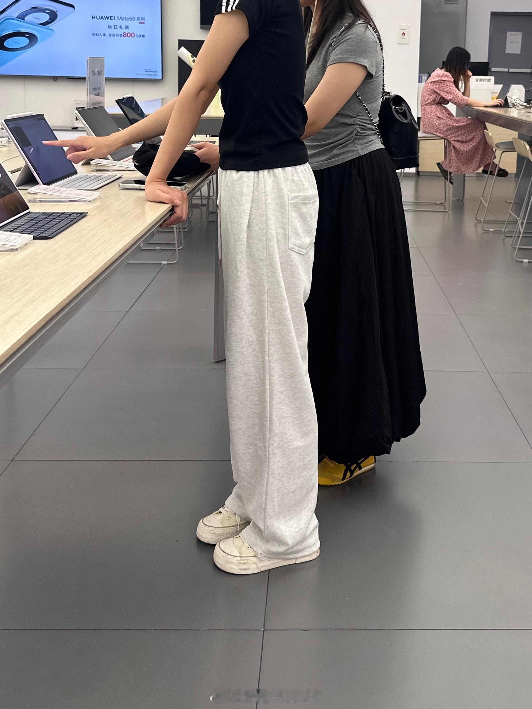 第一次水灵灵地感受到对比了…路过华为店里看到的,第一次直观的感受到了不同颜色裤子和裙子的区别。感觉黑色裙子的比较高级沉稳,卫裤的就显得更加休闲运动,超有松弛感~~看着很轻薄舒服的样子很适合夏天