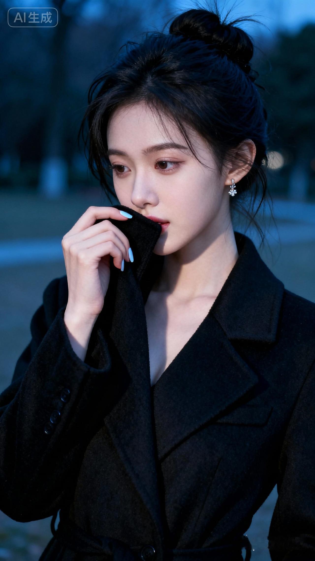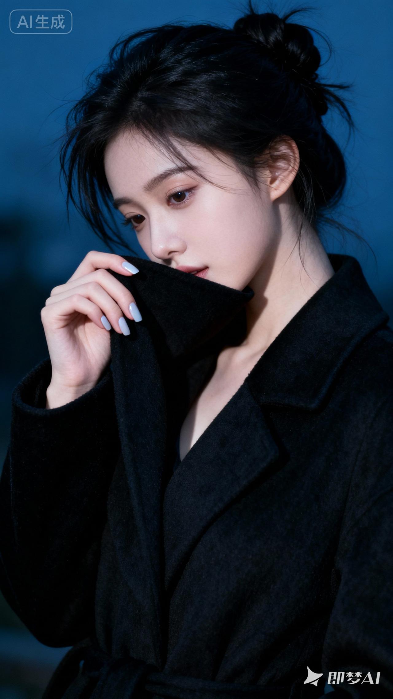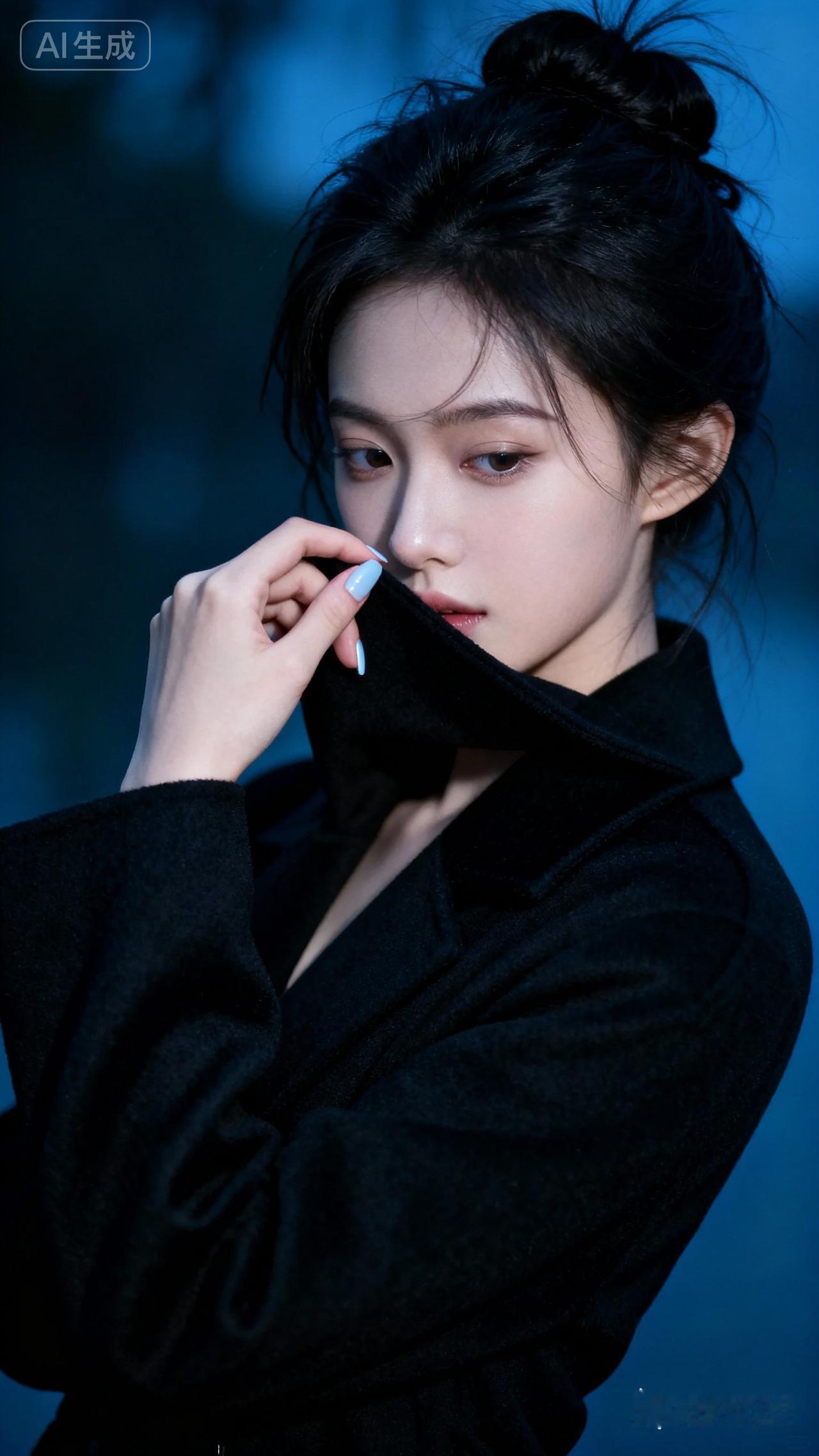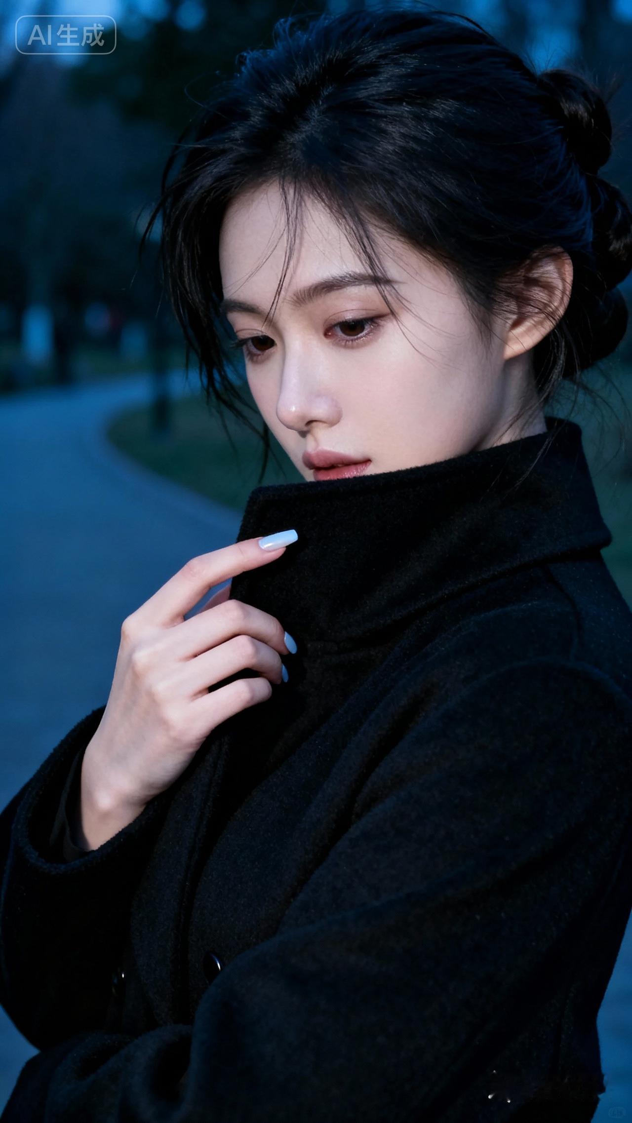 光之影温柔眼神,黑发飘逸,甜美可人温柔感美女温柔气质美女
