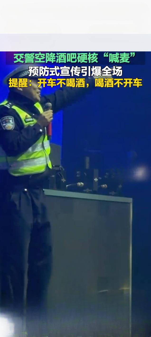 交警空降酒吧“喊麦”宣传酒驾 硬核普法引爆全场 1月2日,湖北襄阳交警创新开展酒驾预防宣传活动,走进当地酒吧以“喊麦”形式向市民普及交通安全知识,相关短视频在快手平台播放量达1.3万次,新颖的普法方式引发网友热议。 当晚,交警身着制服现身酒吧,借助现场音响设备开启“硬核喊麦”:“开车不喝酒,喝酒不开车,安全第一条,幸福伴你行!”直白有力的口号搭配动感节奏,瞬间点燃全场气氛。交警还与市民互动问答,提醒大家杜绝酒驾醉驾,告知酒后驾驶的法律后果与安全隐患,引导消费者自觉选择代驾或网约车出行。现场市民纷纷举起手机记录,主动配合宣传活动,不少人表示这种贴近生活的普法形式“接地气、记得牢”。 据了解,此次“预防式宣传”旨在精准对接夜间消费群体,从源头减少酒驾行为。传统普法宣传多以路面查处、海报张贴为主,而襄阳交警结合年轻群体聚集场景,用“喊麦”这一潮流形式打破距离感,让交通安全理念深入人心。 网友纷纷为交警的创新举措点赞,留言称“这样的普法太酷了”“既有趣又有意义”。此次活动不仅有效传递了交通安全知识,更展现了执法部门与时俱进的工作思路,为普法宣传工作提供了新范式。查酒驾的交警 交警普法宣传