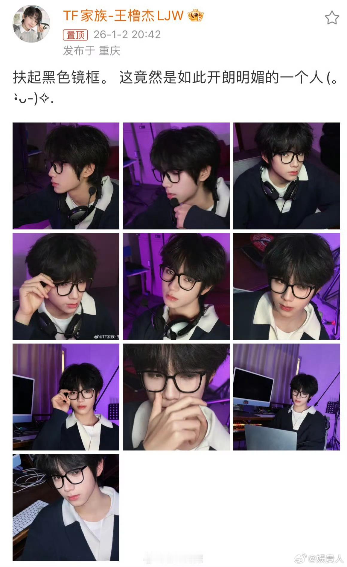 王橹杰黑框电竞男王橹杰开朗明媚的一个人 橹穆都发微博营业了 前后脚