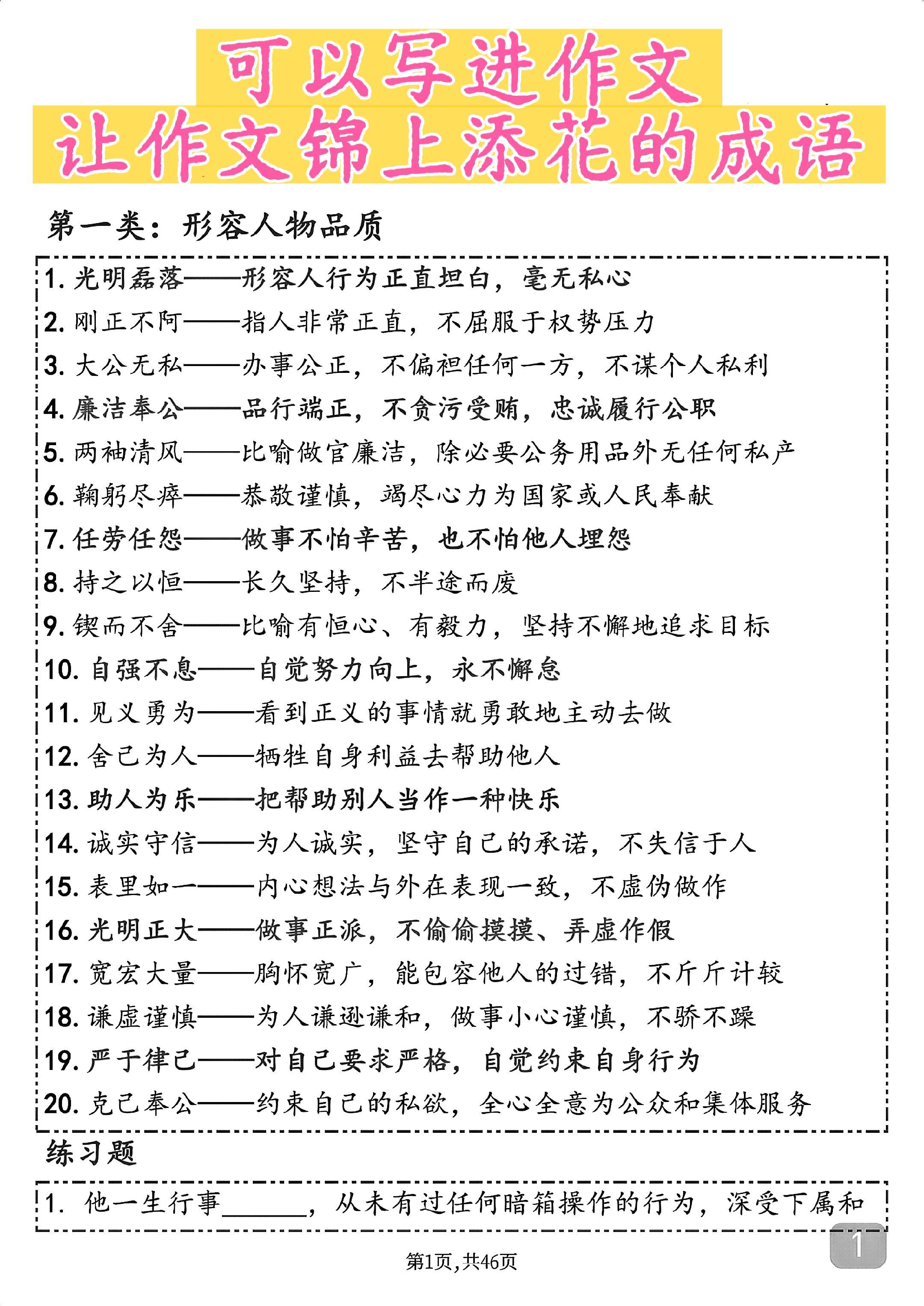 可以写进作文让作文锦上添花的成语汇总