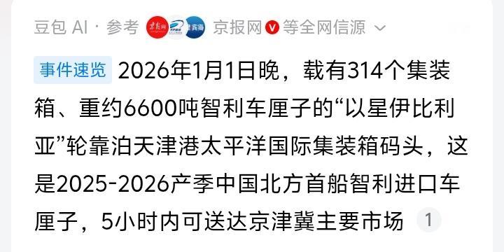 6600吨智利车厘子深夜突袭天津港!5小时闪电攻占京津冀餐桌,背后暗藏一场没有硝烟的舌尖战争 (来源:综合京报网、津云客户端及各大社交平台热议) 当大多数人还沉浸在新年第一天的睡梦中,一艘名为“以星伊比利亚”的巨轮悄然靠泊天津港。314个集装箱、6600吨智利车厘子,像一支沉默的红色军团,在夜色中登陆中国北方。这不是普通的生鲜运输,而是一场关乎速度、温度和欲望的现代供应链奇迹。 从智利果园到中国超市,这场跨越两万公里的旅程仅用23天。更惊人的是,从天津港卸货到摆上京津冀货架,最快只需5小时。单箱作业时间压缩至20分钟以内,十几种物流方案无缝切换,这不是魔法,是中国口岸与时间赛跑的硬核实力。 车厘子早已不是简单的水果。它曾是朋友圈里的“炫富符号”,是年轻人衡量生活品质的隐形标尺。当6600吨车厘子同时涌入市场,价格防线开始动摇。曾经百元一斤的“奢侈品”,正悄悄褪去光环,成为普通人触手可及的冬日甜梦。 但鲜少有人知道,每一颗车厘子背后都是一场生死时速。果农必须在4小时内完成采摘处理,冷链船如同移动的冰宫,港口工人彻夜无休……这一切只为中国消费者咬下时那声清脆的“咔嚓”。那是新鲜爆汁的声音,也是全球贸易流动的脉搏。 随船而来的还有南美大陆的馈赠:牛油果、蓝莓、帝王蟹……它们像一支多国舰队,满载着异域风味驶入中国人的厨房。当哥伦比亚咖啡遇见北京胡同,当秘鲁蓝莓点缀西安酸奶,世界从未如此具体而甜美。 社交平台上早已炸开锅。“车厘子自由”从年度梗变为现实,有人调侃“终于实现水果财务自由”,也有人追问“进口的真的更好吗”。这抹红色挑动着消费者的味蕾,也折射出中国市场的澎湃引力——我们买下的不仅是果实,更是整个产业链的升级。 舌尖上的竞争从未停止。智利车厘子、泰国榴莲、越南火龙果……它们轮番登场,背后是国家间农业技术的较量,更是物流网络与消费升级的双向奔赴。当天津港灯火通明地卸货时,上海、广州的港口同样忙碌。中国胃,正在重塑地球另一端的果园。 或许明天,当你拎起一盒深红发亮的车厘子,不会想到它昨夜还在海上漂泊。但正是这平凡之下的非凡旅程,让我们的生活充满惊喜。从港口到舌尖,5小时不仅是一个数字,更是时代写给普通人的情书——世界那么大,美味那么近。 车厘子自由 舌尖全球化