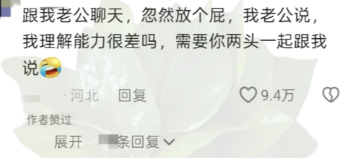 跟我老公聊天,忽然放个屁,我老公说,我理解能力很差吗,需要你两头一起跟我说