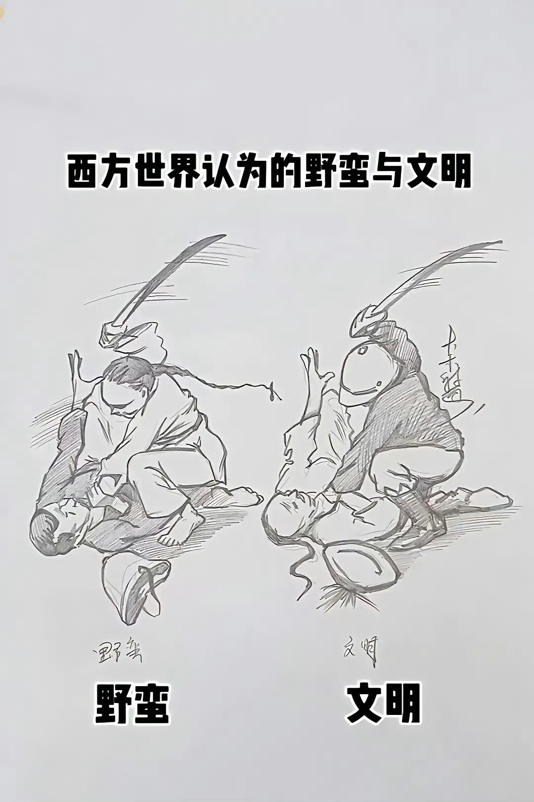 不够讽刺,都用右图…然后把野蛮和文明,标的位置上下区分下,才是西方世界的观点[抠鼻]