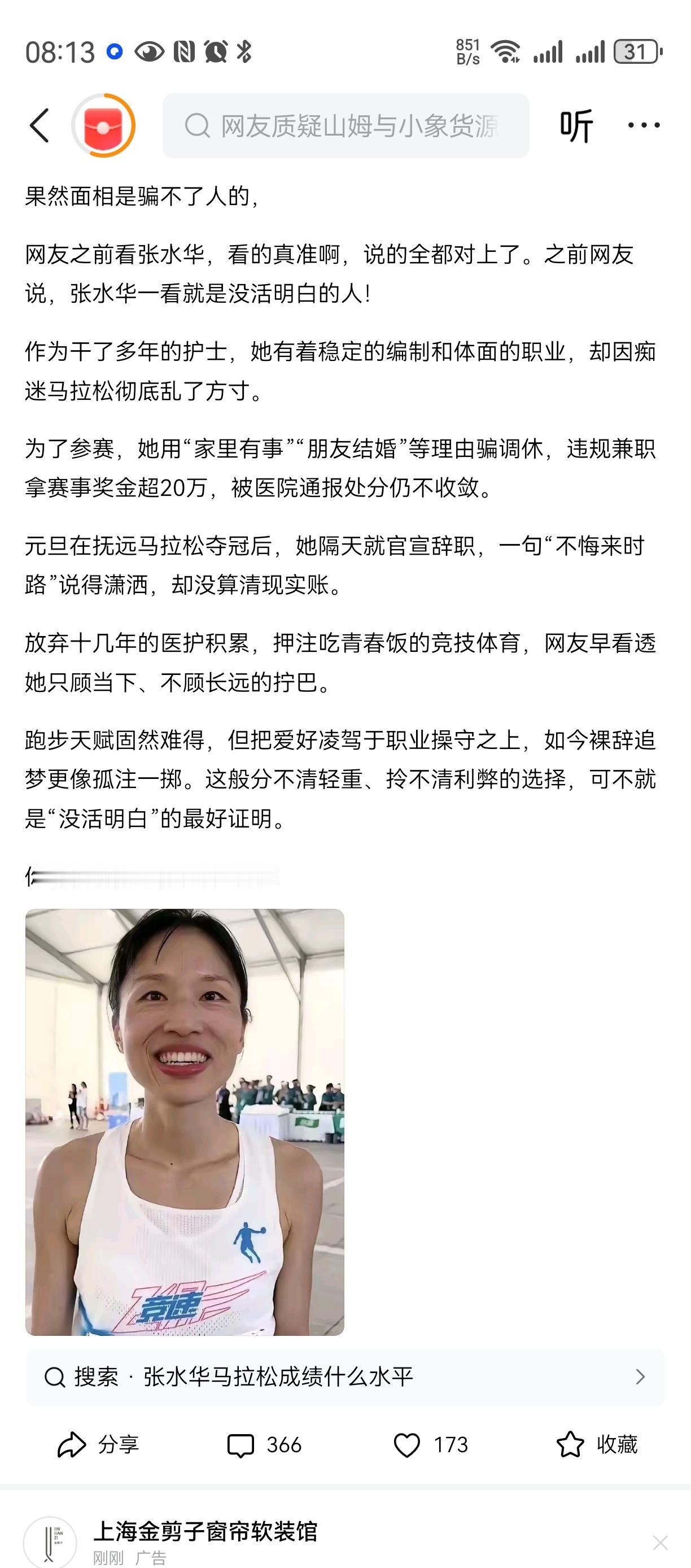 最快女护士会不会很惨??? 工作了这么久, 铁饭碗掉了? 怎么办? 我提供个建议, 自由就业补充社保, 甚至要缴纳个人所得税 步入社会中上层。 可以走马拉松推广圈 依靠这波流量, 成立带货公司, 成为跑的最快耽误张总。。。 主要是太强了, 金子在哪都会发光!最快护士