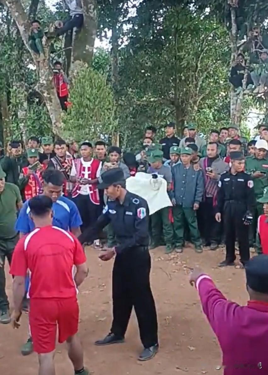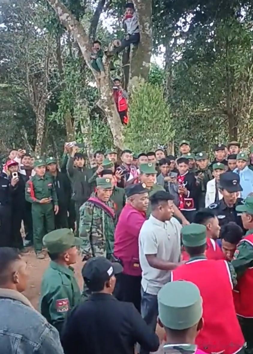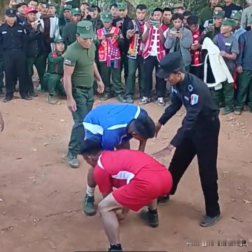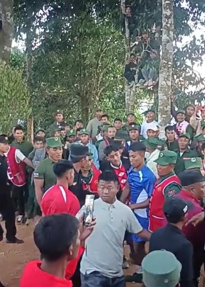 佤邦军区举行新年摔跤比赛 由于比赛规则不明引发骚乱 据佤媒体1月2日消息:值此2026年元旦佳节之际,171军区为了“增强军人体质,弘扬中华传统”举办了一场摔跤比赛,但由于双方队员犯规引发骚乱,最后比赛被迫取消。 在军区领导和裁判的见证下,双方一上场举行了简单的握手仪式,随后进行了热身。 本来摔跤比赛的规则是俩人先抓住对方的膀子,再蹲好马步,随后在裁判的一声令下开始比赛。但不知为何,双方的比赛从扑空开始,由于对方始终无法搂住对方肩膀,所以就从搂腰开始。 由于规则混乱,随后双方围观群众打起了嘴仗,红方群众在有领导在场的情况下,主动向南方支持者发起了攻击,随后引发骚乱,比赛不欢而散。 当然了,比赛中也有值得记忆的瞬间,那就是小孩哥爬在树上观赛的样子,像极了小时候咱们看电影的场景。 在热兵器时代的今天,摔跤成了儿时的记忆。 大家对比赛规则不是太熟悉,或者是受到了互联网的影响而不再记较比赛规则。要知道互联网为了达到节目效果,往往不注重比赛规则,甚至出现了男女混摔情况,这在男女手受不亲的年代是不被允许的。 整场比赛用一句古话总结:师傅多了房子歪!佤邦呢人