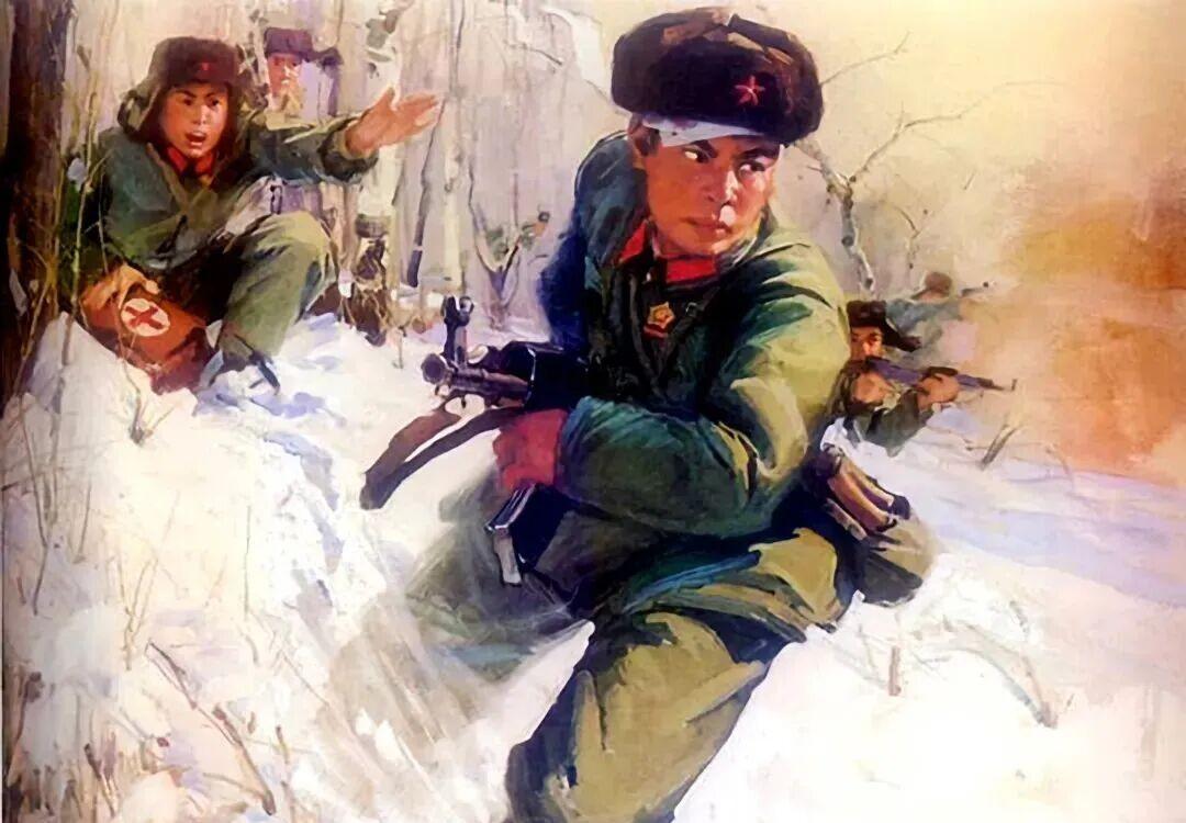 去年3月,中苏在珍宝岛干起来了。这地方不大,但两边都说是自己的。苏联人开着坦克装甲车过来,咱们边防部队上去拦,结果打了起来。一开火就是大事。 头几天小打,到3月15号那天最猛。苏军几百人上来,炮弹往岛上砸。咱们守岛的战士死扛,有个叫于庆阳的,头上被打伤,纱布包着还能打。他推开卫生员,端枪往前冲。一步、两步……走了八步,倒在雪地里再没起来。 那次一共打了三次仗,从3月2号到17号。咱们死了29个,伤62个,有个人失踪了。苏联那边死了58个,伤94个。最后岛上还是咱们的人站着。他们撤了,咱们收了战场,还拖回来一辆T-62坦克。 这画就是画的于庆阳那八步。那时候很多人贴家里墙上。现在提起来,也就一些老一辈还记得清楚。