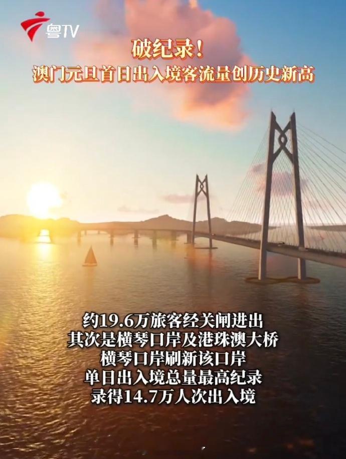 任嘉伦《风与潮》的文旅带动效应,真是太强了广东文旅携手澳门旅游局,接连推出以“风与潮”为主题的特色打卡路线——根据澳门治安警察局最新数据,元旦首日:1⃣ 总出入境客流量创历史新高!2⃣ 访澳旅客达历年元旦单日最高!3⃣ 横琴口岸单日出入境总量刷新记录!风与潮,涌向澳门,这不仅是一场文旅的热潮,更让世界看见——澳门,是一座充满故事与能量的英雄之城。风与潮