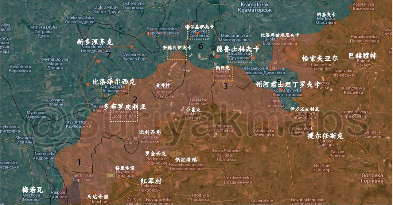 苏先生预估了到春天(浅红色)和夏天(虚线)俄军在红军村恢复枢纽功能后能抵达的位置。春季战果:1、通过M-30公路抵达第聂伯罗彼得罗夫斯克州边界2、吃下多布罗皮利亚,抵达比洛泽尔西克并切断其补给线3、沿着T0514抵达安德烈伊夫卡,同时沿着沙霍夫公路到达赖西克4、在南方集群的支援下,对顿河君士坦丁罗夫卡和德鲁士科夫卡形成纵深包围夏季战果:5、对顿河君士坦丁罗夫卡进行渗透作战后拿下城市6、抵达谢尔盖伊夫卡,攻占德鲁士科夫卡西侧高地,加剧对德鲁士科夫卡的围困7、攻克比洛泽尔西克,威胁新多涅齐克另外他还声明,这个预测并未涵盖苏勒达尔前线进展,因为这边走向取决于塞夫尔斯克,同时也没有包含红利曼在春天将被占领的情况。来源:suriyakmaps俄乌局势新进展乌克兰已放弃加入北约普京称已无兴趣等乌方从占领区撤出