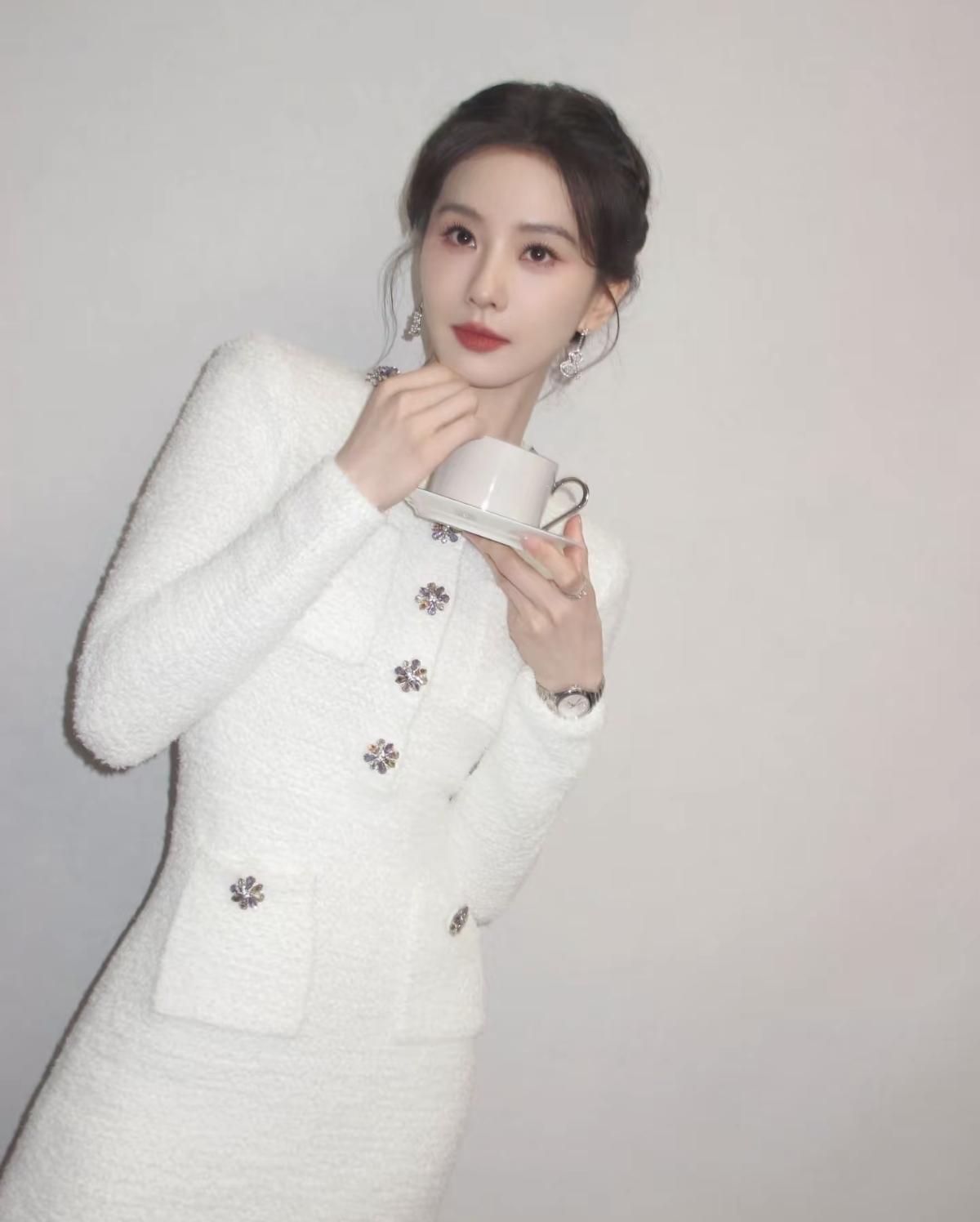 小香风设计尽显精致,钻饰纽扣点亮细节,刘诗诗这一身,是行走的高级感[加一] 极致的白,遇上极致的美,刘诗诗把简约和贵气都穿在了身上[比心]简约的白色,被她穿出了不简单的惊艳感,每一步都自带高光[给力][玫瑰]娱乐明星