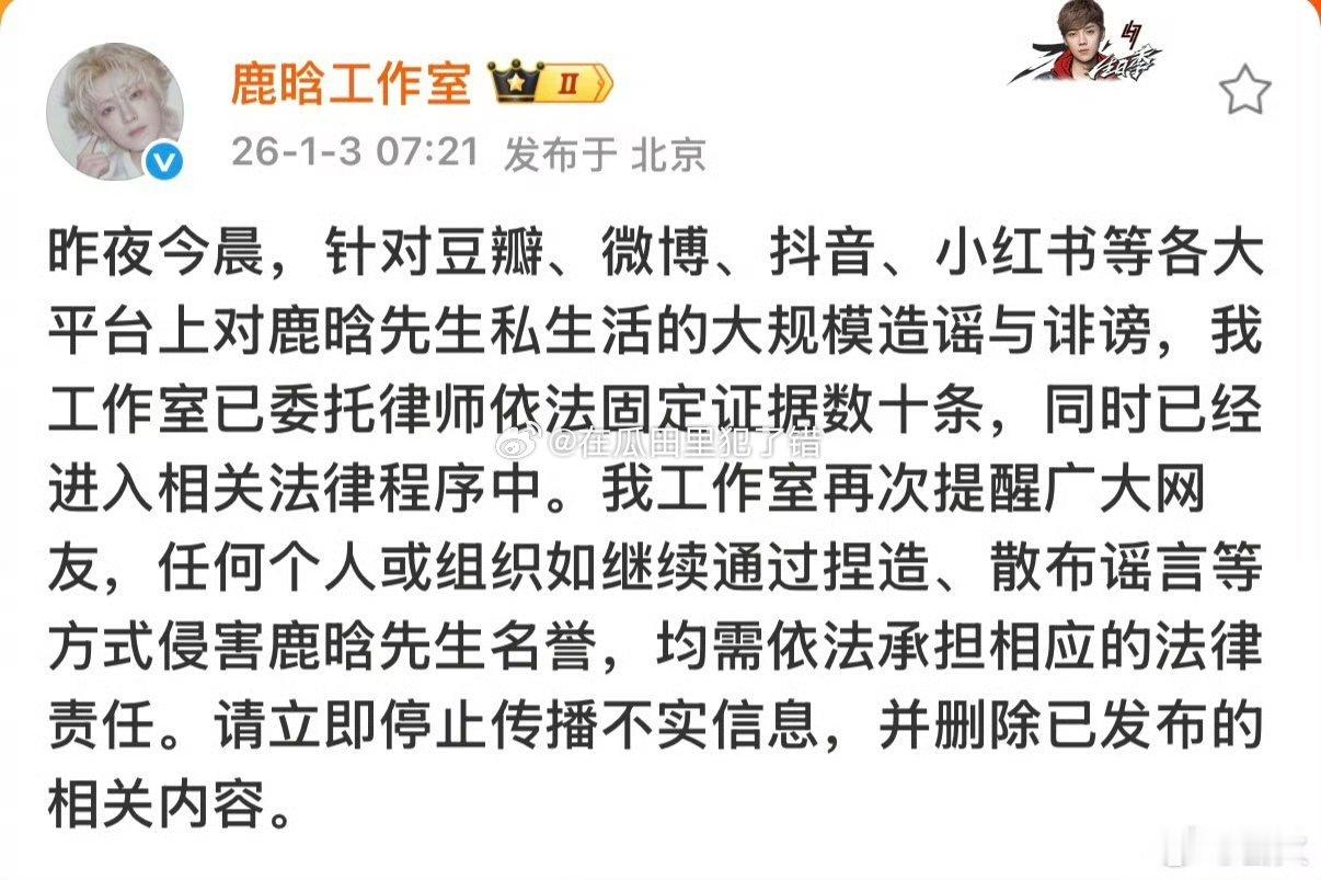 iamrooise鹿晗、范丞丞、林更新、黄明昊、王安宇工作室都发了声明