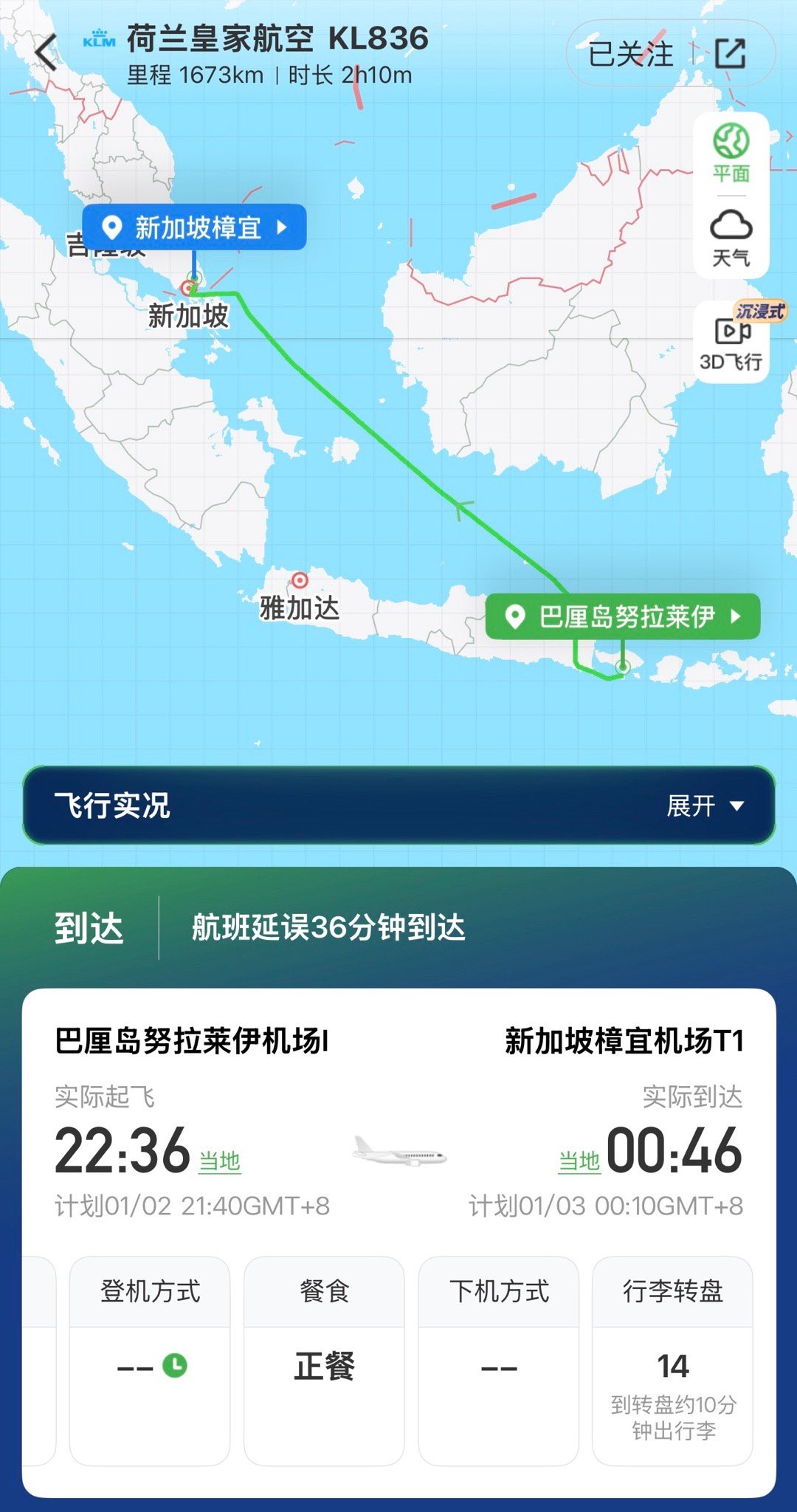 ✈️第一次体验传说中的「第五航权」航班!——荷航KL836 巴厘岛 ✈️ 新加坡 ✈️ 阿姆斯特丹📍航线:DPS → SIN → AMS🛫执飞机型:B777-300ER(注册号PH-BVG,机龄13.6年)💺舱位配置:公务舱1-2-1|超经2-4-2|经济舱3-4-3✨虽然飞机“年纪不小”,但保养真的超好!干净整洁、设备齐全,完全看不出是十几年的老将(在海外十几年倒也不老)~🍚 餐食小惊喜虽然是深夜21:40从巴厘岛起飞,但荷航居然给配了正餐!咖喱鸡肉分量很足,味道也在线(比某些日间短途敷衍的航司强多了)。不过饮料只给了一杯,不是整罐,略抠哈哈~📺 娱乐系统有点小bug经济舱全舱都有个人屏幕,语言选项里缺失“简体中文”,点进标着“繁体中文”的却是简体中文。。。原来是没繁体啊。🪑 座椅体验经济舱间距尚可,坐2小时10分钟(1673km)完全OK,但!没有脚踏板!想到后面有人要一路坐15小时到阿姆斯特丹……真的心疼🥲👥 上座率爆满!基本满员🔥 地面值机是印尼鹰航代理,超严格!哪怕你是Elite Plus,想和同行人坐一起?普通的连续座位也得加钱选座(非应急出口/前排),有点离谱……🛋️ 休息室体验用的是Garuda Indonesia(印尼鹰航)的休息室:简单热食+软饮+酒水,能坐下就算幸运。隔壁龙腾合作的休息室人山人海,排队超长,果断放弃。💡 小贴士如果提前订票,强烈建议冲公务舱!价格其实挺合理,还能收藏荷航经典的小房子模型🏠 而且他们777的公务舱是单间,隐私&平躺都没问题,吊打很多航司!我是临时订票,公务价格太高,没有意义。🇸🇬 新加坡樟宜效率yyds!落地后走到行李转盘,行李已经开始转了!全程无等待,对比去程在巴厘岛等行李等到怀疑人生……印尼地面效率真的急需提升😅🌟总结:第五航权初体验很新鲜!荷航虽是老牌航司,但服务细节在线,尤其适合想顺路玩新加坡+欧洲的朋友~下次一定要试试他们的公务舱!梦龙飞行日志 印度尼西亚·巴厘岛国际机场