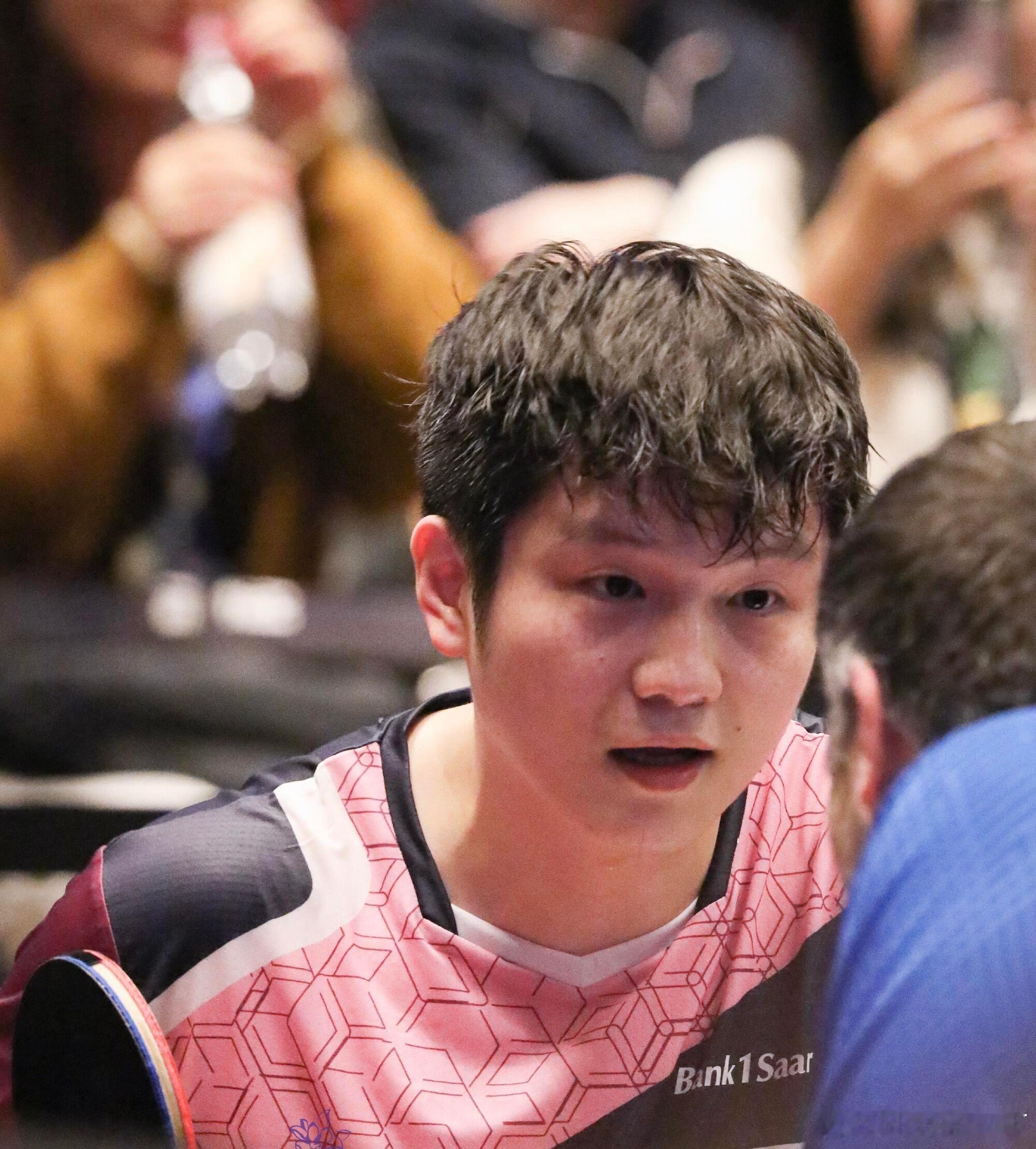 樊振东小卷毛造型超级可爱。 猜人:躲在东东后面这位是谁?