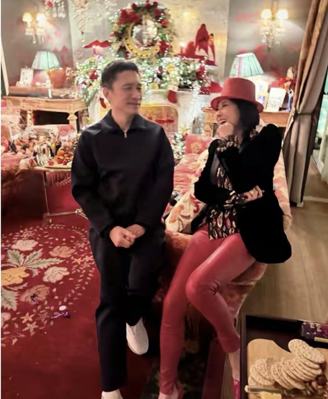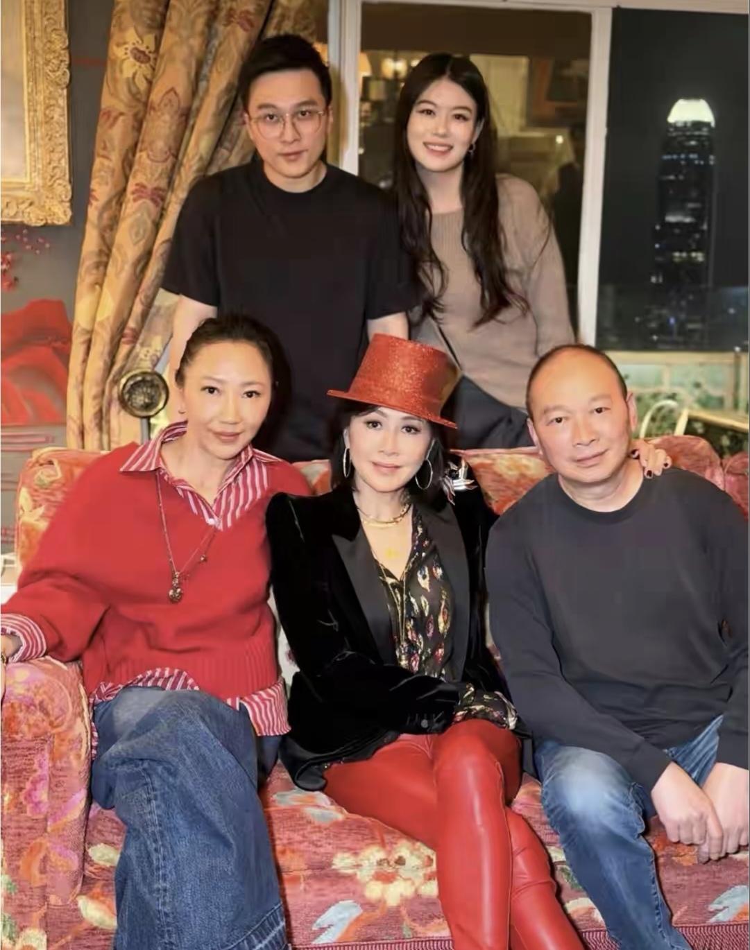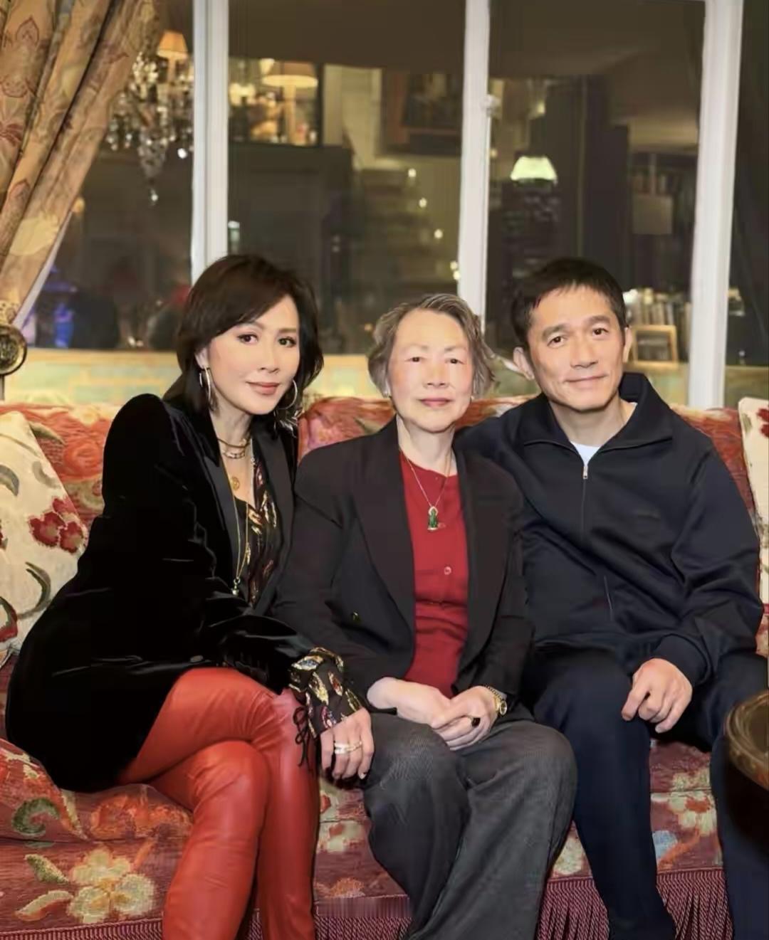 60岁的刘嘉玲还是精神勃勃,邀请80岁的老妈在豪宅里一起过新年,这孝心值得点赞! 看刘嘉玲,打扮非常酷,黑色外套花色打底,红色紧身裤,外加上高跟红色皮鞋,戴着红色礼帽,真是公主级别的!梁朝伟打扮可是成熟又低调,虽然在自己家里,还是那么拘谨的神情。刘嘉玲夫妇虽然没有孕育一男半女,俩人对看的眼神依然充满了年轮的深情。娱乐圈的楷模夫妇! 刘嘉玲80岁的老母亲精神矍铄,看着真是年轻啊。虽然头发有点儿花白,但是皮肤白皙又紧致,满面红光,看着比女婿梁朝伟气色还好。 母亲,女儿,女婿,还有刘嘉玲弟弟一家一起欢度新年,温馨又其乐融融!