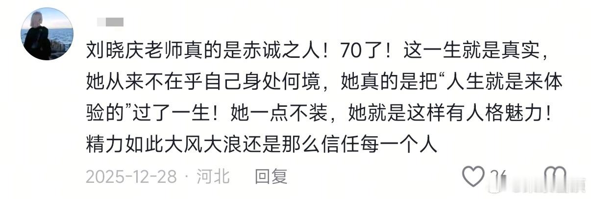 每个年龄段的人都会爱上刘晓庆 庆奶才是我的人生导师啊,七十多了依然对世界充满好奇和赤诚,鲜活得没人会不喜欢她!!一路繁花