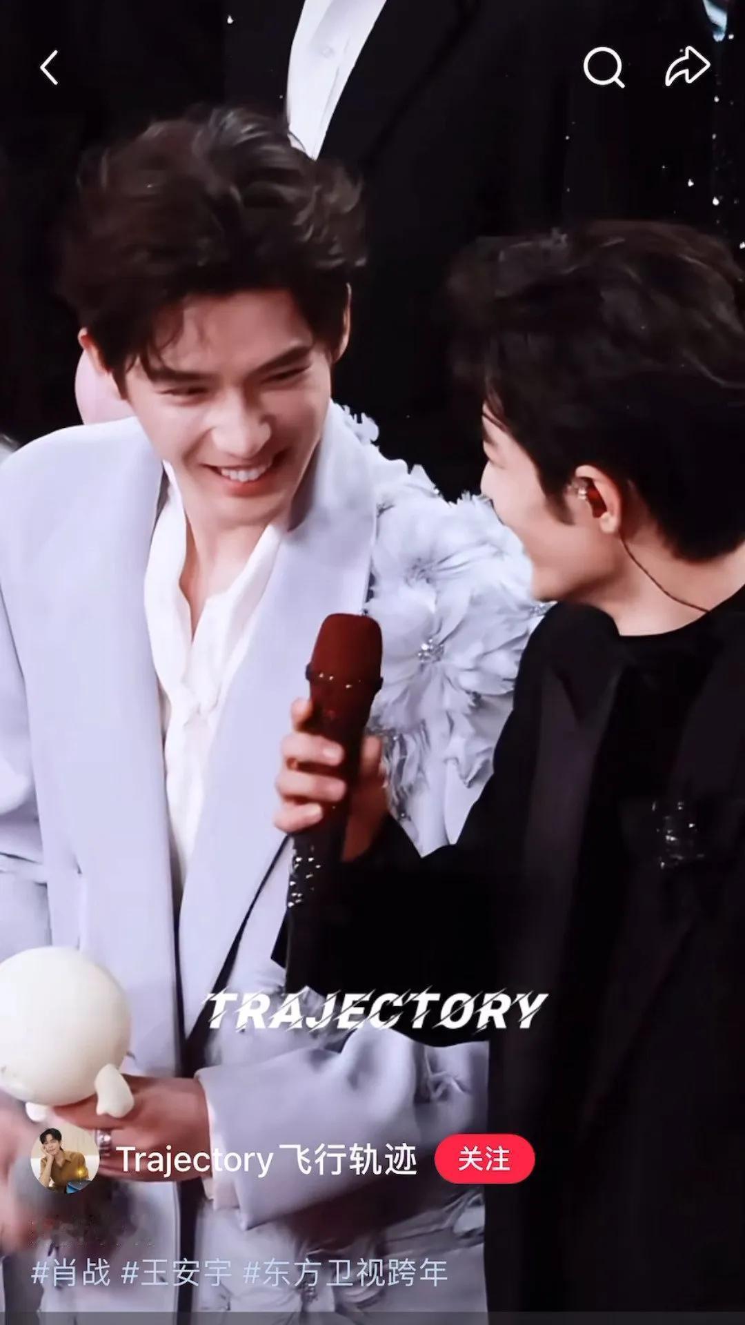 弟弟不会永远年轻,但永远有年轻的弟弟,这句话我算是真懂了。 跨年晚上那一幕?肖战给王安宇递话筒,清冷成熟前辈遇上鲜活弟弟,一个笑起来阳光灿烂,一个眼神自带点小委屈,我的次元壁得那叫一个猝不及防! 王安宇,是个614分的学霸,16年考进中传的最帅艺考生,在学校是传奇人物。主持、拍照、演戏样样来,眼睛深邃得很,带着种跟他文笔一样的苦情劲儿,有点林黛玉那味儿。 再看肖战,也是个顶级优秀的主儿。大二就创业开工作室,大四毕业设计作品价值直接飙到20万。那张建模脸就不说了,艺术水平还超高,把他们学校工商论坛都搞得跟粉丝超话似的。 这两人明明没合作,同框却能瞬间让人上头,靠的估计就是那种说不出的磁场契合。王安宇说过,前18年过得狼狈又庆幸,告诉自己得耐住寂寞,埋头努力,把那些前路不定的未知,都变成向前的期待。 肖战呢,也差不多。每年给自己许心愿、立目标。每个角色杀青,都要写告别文案,带着热血和赤诚。就说给任少白写的:“手里的情报被攥得发烫”“在暗夜再走一程吧”“天际的光亮正在拉开新时代的篇章”,寥寥几笔,角色波澜壮阔的一生就出来了。 他俩的磁场妙就妙在,一个看着少年意气、张扬洒脱,却老有种破碎感;另一个端庄稳重,是熟男完成体,带着历经世事的温柔,笑起来又跟大男孩似的阳光开朗。 这么说,帅哥同框,磁场对了,真是看得人又爽又上头。