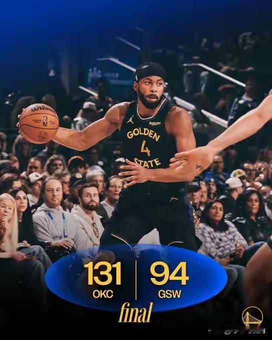 NBA常规赛西部第八的金州勇士,主场对阵西部第一的雷霆。 科尔的勇士选择战略性放弃。库里,巴特勒,格林,梅尔顿,库明加等多名球员轮休,以备明天背靠背对爵士。 此役勇士穆迪,桑托斯,理查德,波杰,波斯特首发。 雷霆第一节就确定了10分以上的领先优势,第二节一度被勇士打出9:0小高潮,比分追至36:38。但勇士没能实现追平反超,迎来了却是0:19的攻击波。也正是这波进攻,让雷霆半场就带走了比赛。 下半场比分越拉越大,勇士无力回天。最终比分定格在131:94。 此役勇士6人得分上双 波杰姆斯基出场26:18,12分,4篮板,4助攻。 穆迪出场27:02,13分,2篮板。 理查德出场27:12,13分,5篮板,1助攻。 波斯特出场22:48,11分,3篮板,2助攻。 桑托斯出场26:12,9分,8篮板。 希尔德出场23:41,11分,2板,1助攻。 霍福德出场15:46,13分,6篮板。