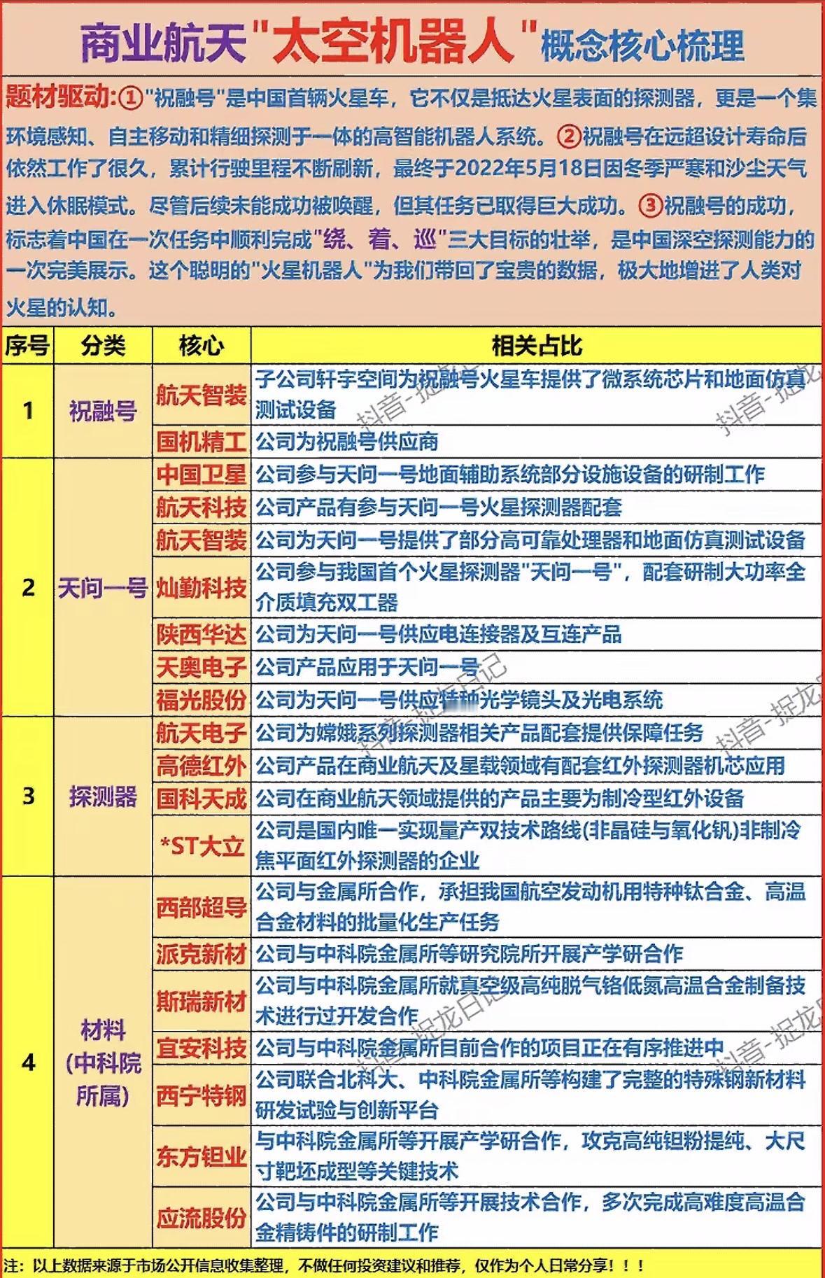 中国“祝融号”火星车圆满完成任务,展现深空探测实力,多家企业助力航天科技突破。 中国“祝融号”火星车圆满完成任务,展现深空探测实力,多家企业参与配套研发,推动商业航天技术进步。